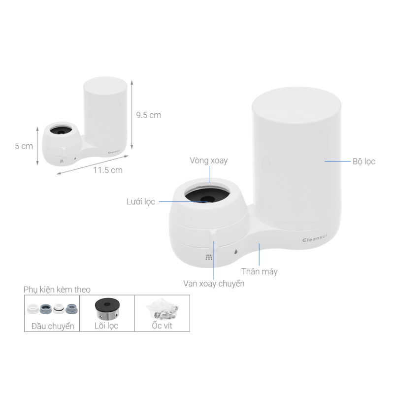 Thiết kế nhỏ gọn, tinh tế, dễ dàng lắp đặt trực tiếp ngay tại vòi nước, cung cấp nước sạch dùng đánh răng, rửa mặt