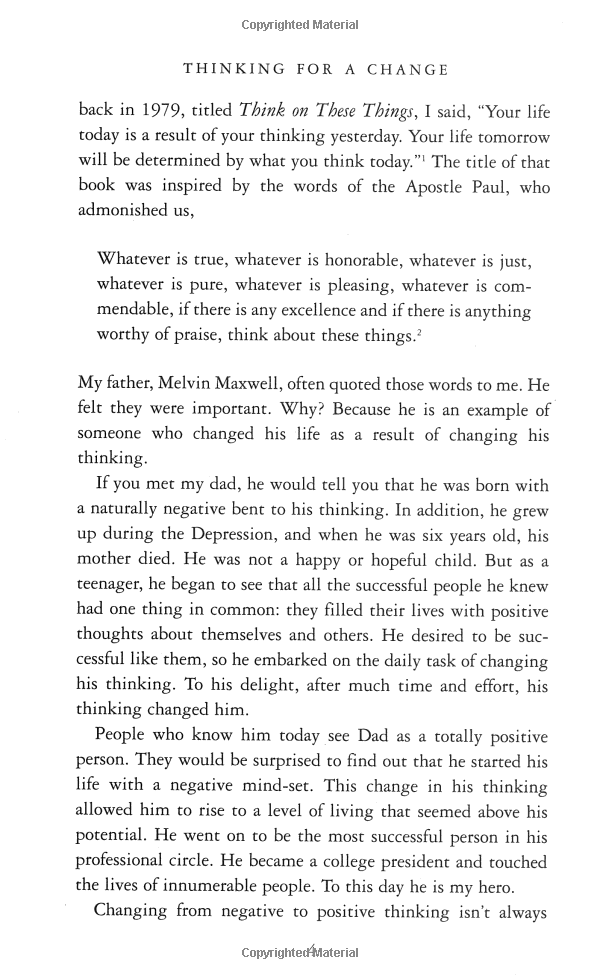 Mua tại TiktokGood thinking. It's the one thing all successful people have in common. People who achieve their dreams understand the critical relationship between their level of thinking and their level of progress - and know that when thinking is limited so is potential. John C. Maxwell explores the idea and identifies the specific skills people need to make their potential for success explode into results. From focused and creative thinking to thinking of the big picture or the bottom line, he provides examples of effective thinking for every situation. The book doesn't tell you what to think but how to think. After all, success is as simple as changing your mind!