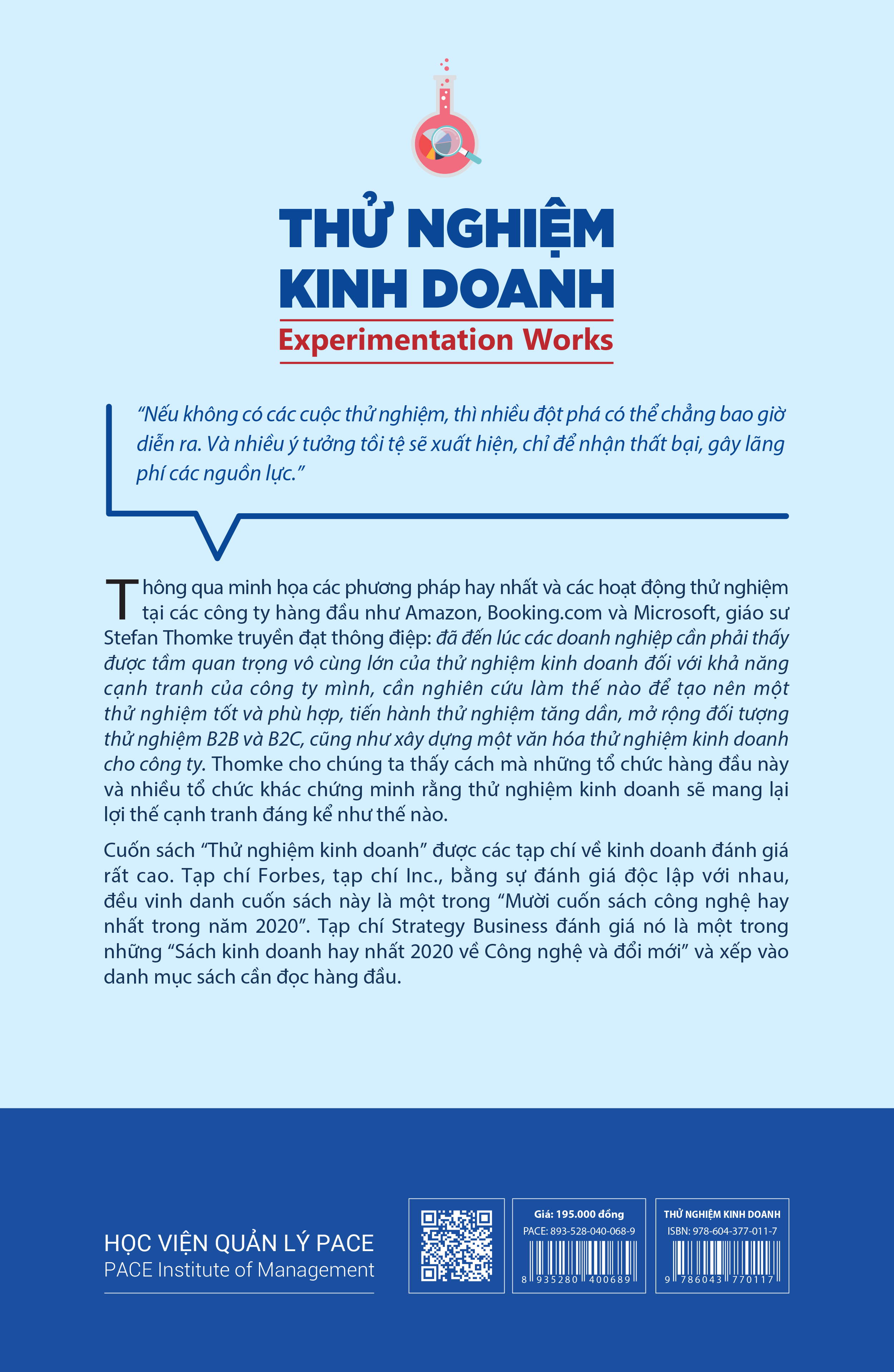 Thông qua minh họa các phương pháp hay nhất và các hoạt động thử nghiệm tại các công ty hàng đầu như Amazon, B và Microsoft, giáo sư Stefan Thomke truyền đạt thông điệp: đã đến lúc các doanh nghiệp cần phải thấy được tầm quan trọng vô cùng lớn của thử nghiệm kinh doanh đối với khả năng cạnh tranh của công ty mình, cần nghiên cứu làm thế nào để tạo nên một thử nghiệm tốt và phù hợp, tiến hành thử nghiệm tăng dần, mở rộng đối tượng thử nghiệm B2B và B2C, cũng như xây dựng một văn hóa thử nghiệm kinh doanh cho công ty. Thomke cho chúng ta thấy cách mà những tổ chức hàng đầu này và nhiều tổ chức khác chứng minh rằng thử nghiệm kinh doanh sẽ mang lại lợi thế cạnh tranh đáng kể.