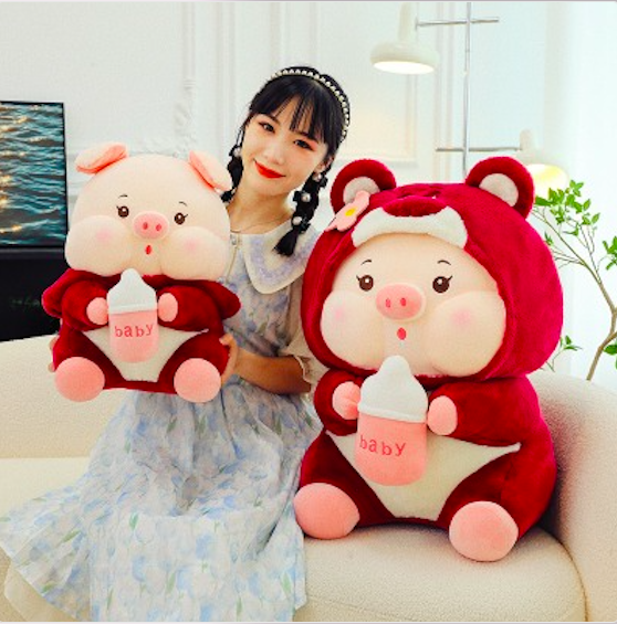 👉 gấu bông , thú nhồi bông hình chú heo ôm bình sữa siêu cute