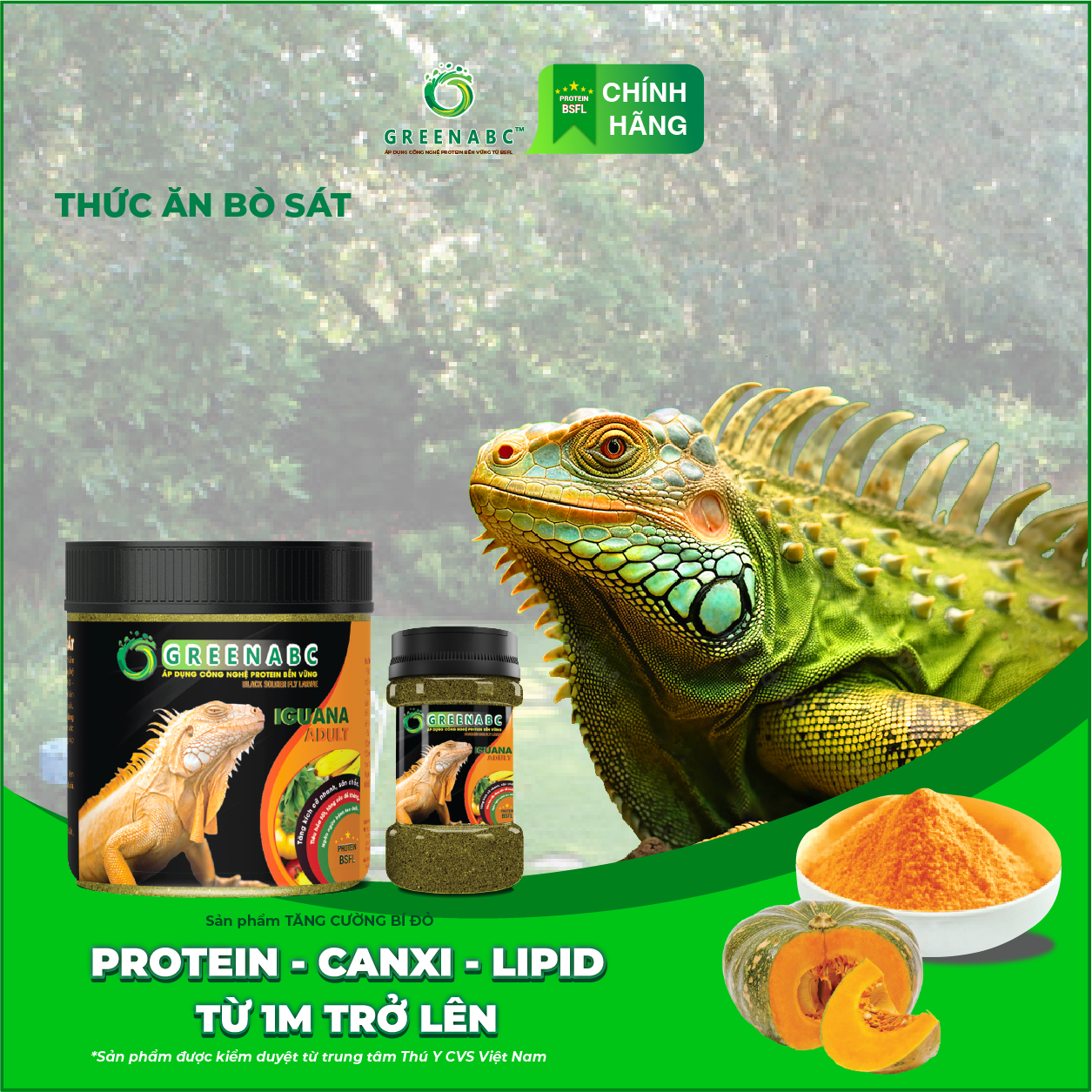 THỨC ĂN BÒ SÁT - BỔ SUNG DINH DƯỠNG PROTEIN, CANXI, LIPID GREENABC là thức ăn cao cấp dành cho các loại bò sát: IGUANA, BEARDED DRAGON, LEOPARD GECKO. Đặc biệt sản phẩm GREENABC được