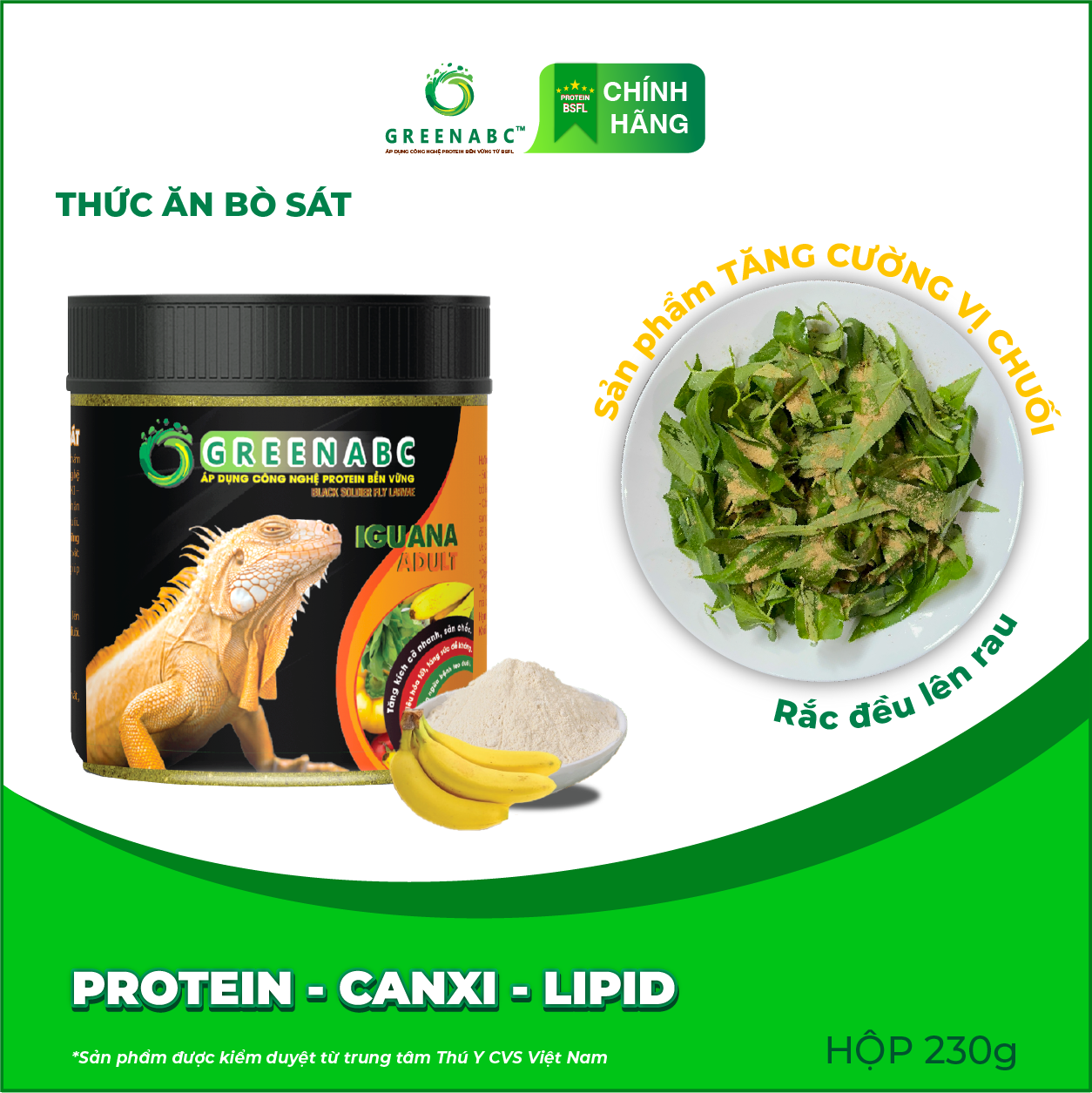 ✨Thức ăn bò sát Iguana Trưởng Thành GREENABC vị chuối dùng cho Iguana từ 1m trở lên giúp gai bung, gù cao, dáng đẹp, lên màu tươi - Hộp 230g