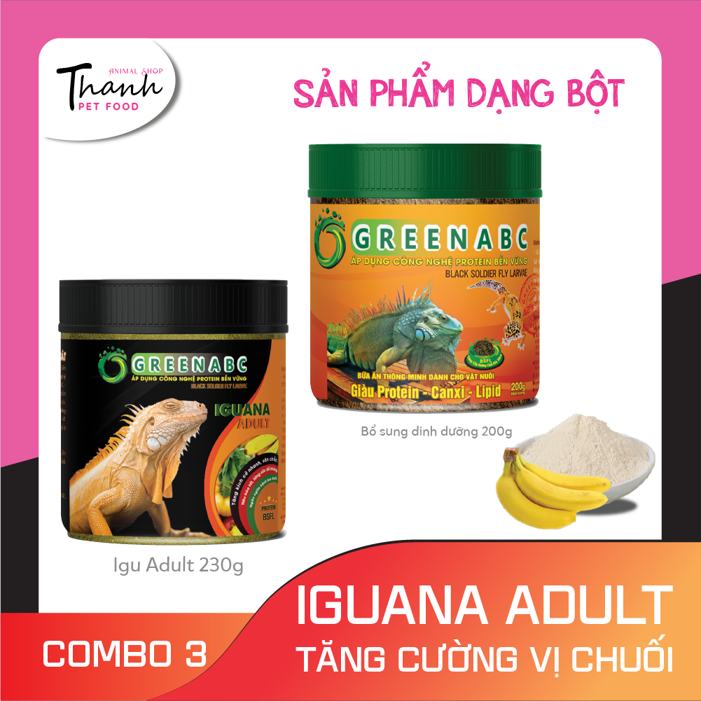 ✨Thức ăn bò sát Iguana Trưởng Thành nhãn GREENABC vị chuối dùng cho Iguana từ 1m trở lên – Gai bung, gù cao, dáng đẹp, lên màu tươi - Hộp 230g