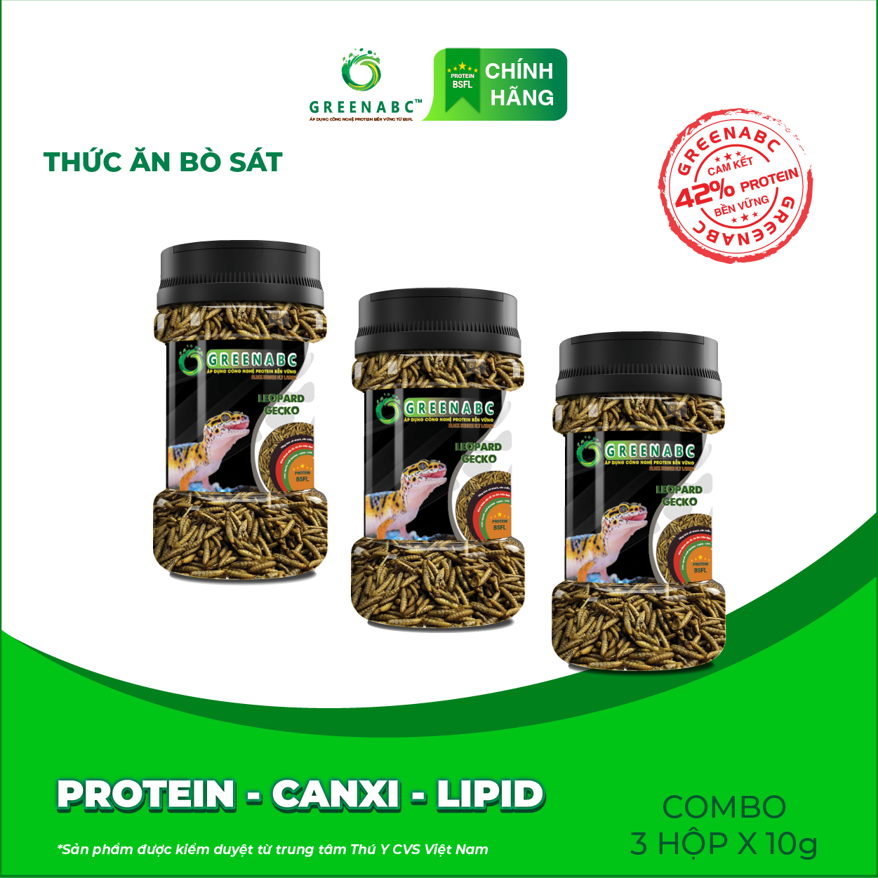 Mua tại TiktokGREENABC - THỨC ĂN DÀNH CHO THẰN LẰN DA BÁO - BỔ SUNG DINH DƯỠNG PROTEIN - CANXI - LIPID GREENABC là thức ăn bổ dưỡng dành cho THẰN LẰN DA BÁO. Đặc biệt sản phẩm GREENABC được sản xuất theo phương pháp Áp dụng công nghệ PROTEIN bền vững rất giàu PROTEIN – CANXI – LIPID có trong BSFL, đã được Mỹ (AAFCO) và EU chấp nhận đưa vào công thức cho ngành sản xuất thức ăn dành cho vật nuôi. Sản phẩm GREENABC cung cấp các giá trị dinh dưỡng bền vững cho vật nuôi, giúp cho Thằn Lằn Da Báo: