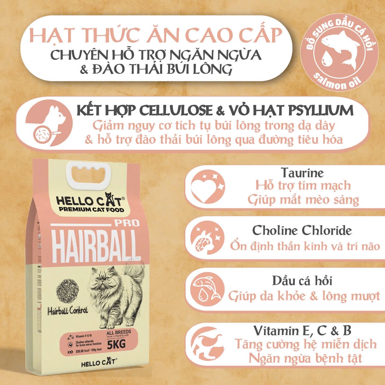 ✨Thức Ăn Cho Mèo Con Và Trưởng Thành Ngăn Búi Lông Hello Cat HairBall Bao Xá 5KG