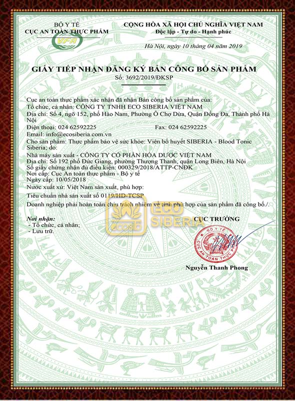 Không chỉ được chiết xuất từ những nguồn dược liệu thiên nhiên quý giá, Viên Bổ Huyết Siberia Siberia còn được tinh chiết bằng công nghệ kỹ thuật hiện đại hàng đầu của Công ty Cổ phần Hóa dược Việt Nam và sự kiểm định chất lượng chặt chẽ từ các chuyên gia Nga của Eco Siberia (Ltd), giúp chuyên biệt hóa công dụng của sản phẩm tốt cho người dùng.