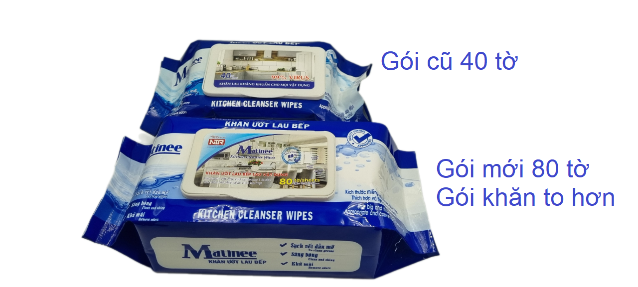 KHĂN ƯỚT LAU BẾP MATINEE Gói mới 80 tờ, khăn to và dày Sản phẩm sử dụng hương thực phẩm phù hợp cho vệ sinh các thiết bị vật dụng trong nhà bếp. Lau vệ