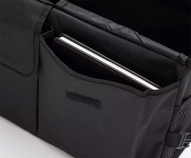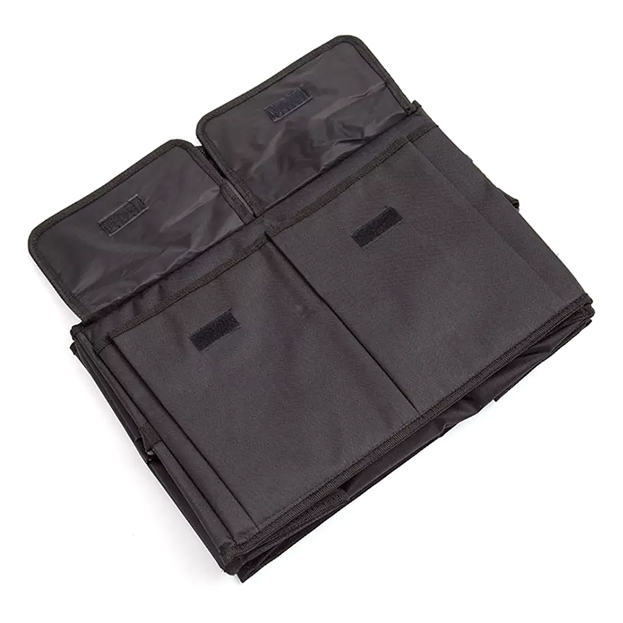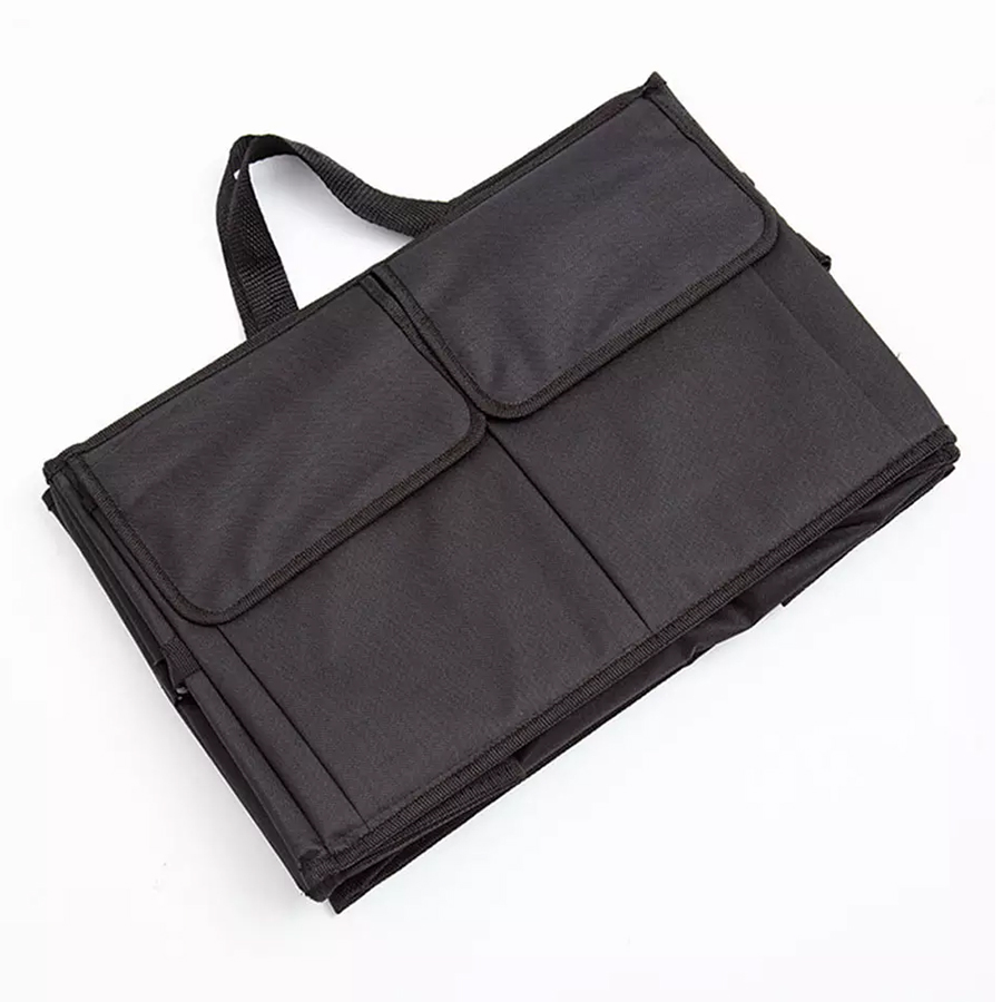 Hộp để đồ đa năng gấp gọn ở cốp sau xe hơi ô tô. Khi không dùng gấp gọn lại như 1 chiếc túi xách kích thước 40x26cm, khi kéo ra thành hộp đồ lớn