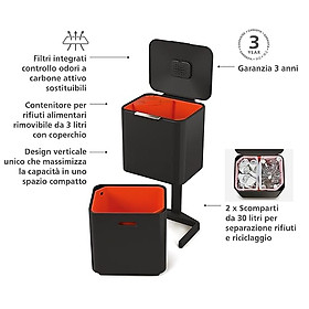 ✨Thùng rác 2 ngăn Joseph Joseph 30106 Totem Max 60L màu đen carbon Hàng chính hãng