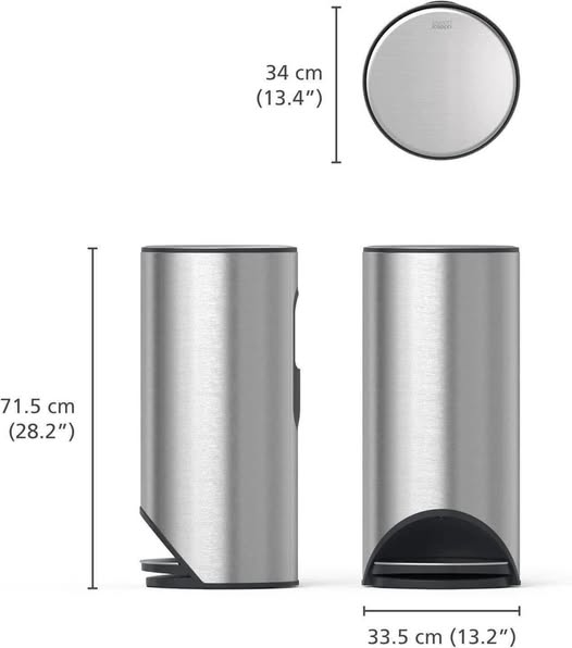 ◉ Thương hiệu : Joseph Joseph ◉ Chất liệu : ➤ Thân : Thép không gỉ ➤ Ngăn chứa rác : Nhựa ABS ◉ Kích thước : ➤ Đóng nắp : 36.6x30x76cm ➤ Mở nắp