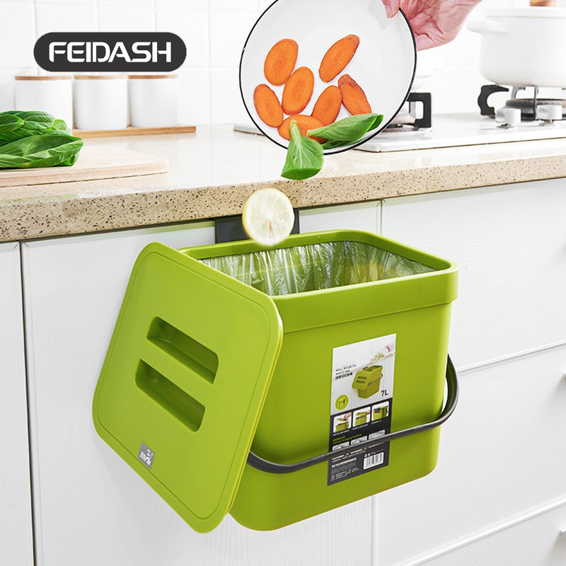 ✨Thùng Rác Treo Tường , Treo Tủ Bếp FEIDASH - Thiết Kế Nắp Gài Mép Thùng, Thùng Có Móc Cài Cánh Tủ, Bắt Vít Hoặc Dán Tường Tiện Dụng