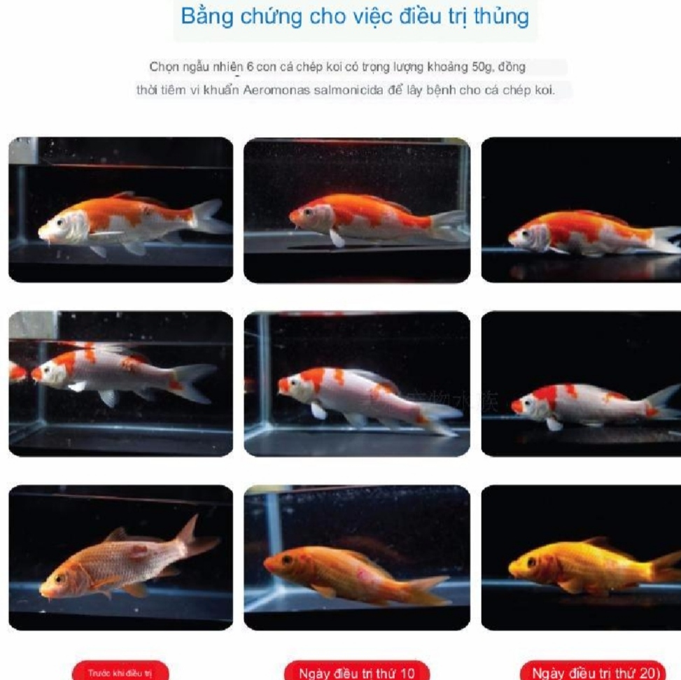- Trị xuất huyết đường ruột do vi khuẩn Aeromonas và Pseudomonas gây ra trên cá tra. - Trị bệnh phát sáng do Vibrio gây ra trên tôm.