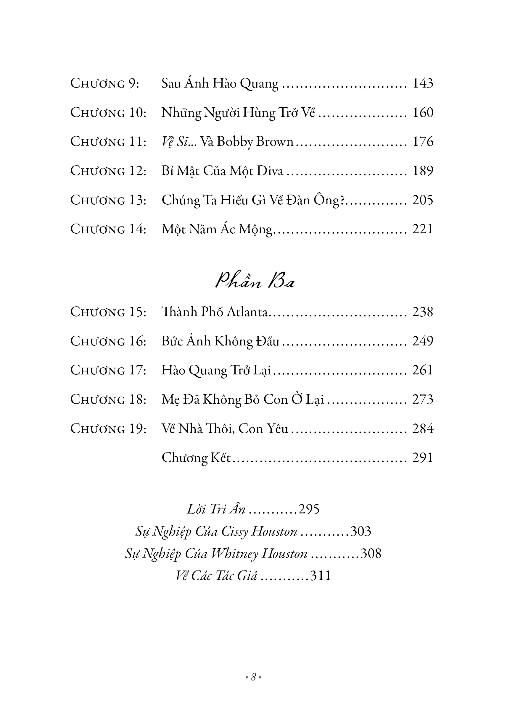Công ty phát hành: Tân Việt Tác giả: Cissy Houston và Lisa Dickey Biên dịch: Nghi Phương Nhà xuất bản: NXB Dân Trí Năm xuất bản: 2022 Kích thước: 14.5 x 20.5 cm Số trang: 312 trang và 32 trang phụ lục ảnh màu Hình thức: Bìa mềm