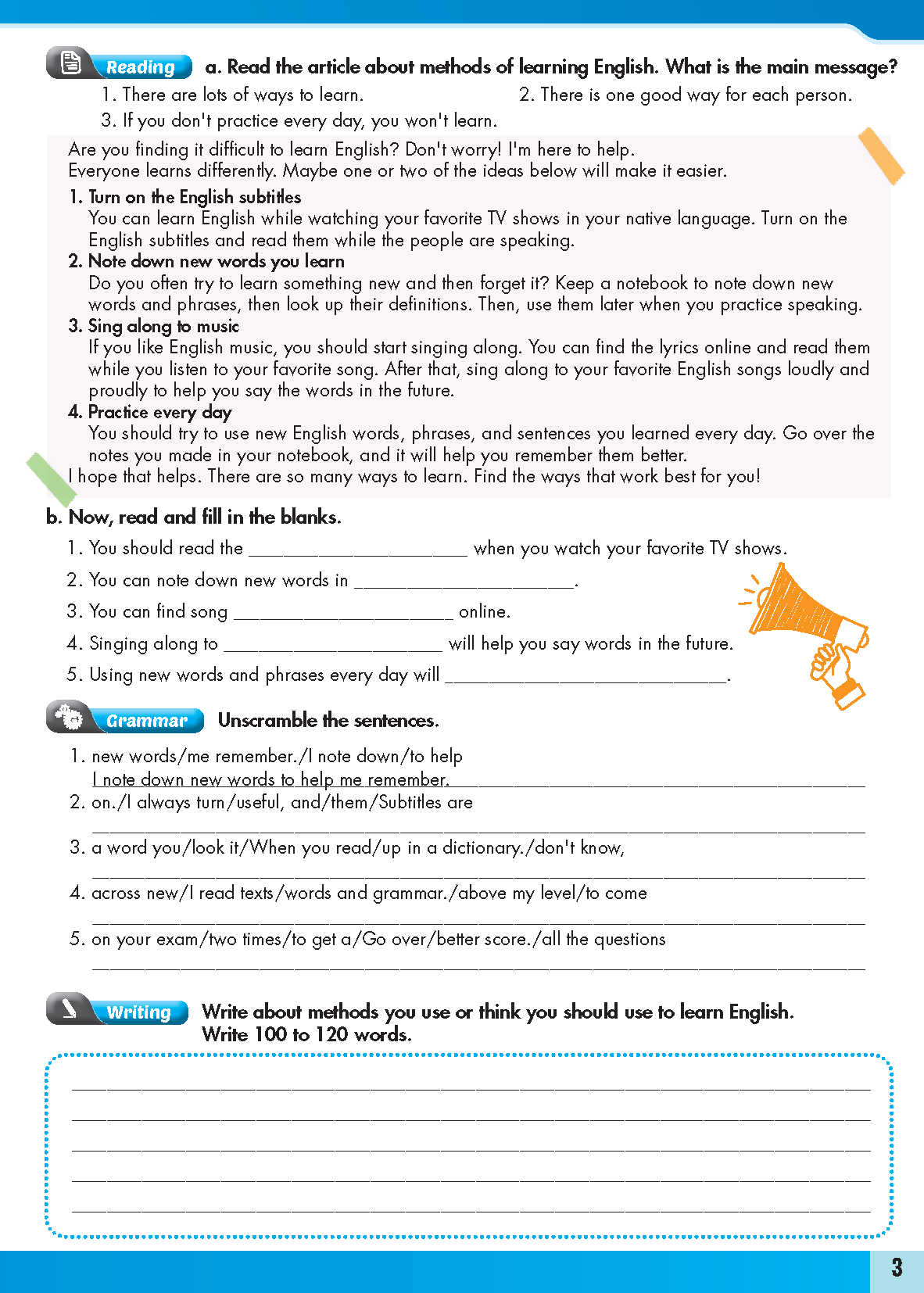 Bộ sản phẩm gồm 3 cuốn: Sách học sinh, Sách bài tập, Vở tập viết Tiếng Anh i-Learn Smart World là khóa học 4 cấp độ tiếng Anh dành cho học sinh THCS. i-Learn Smart