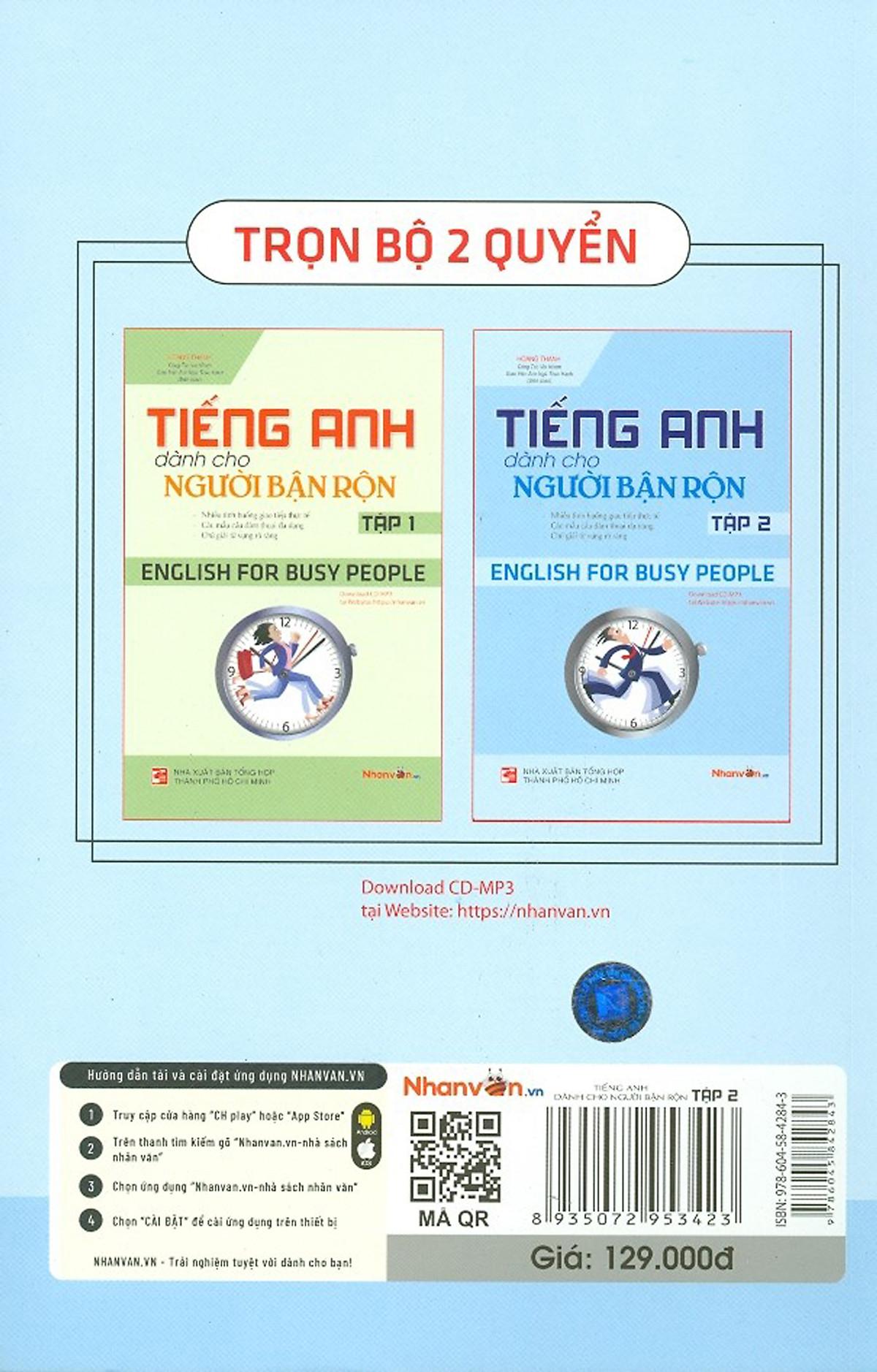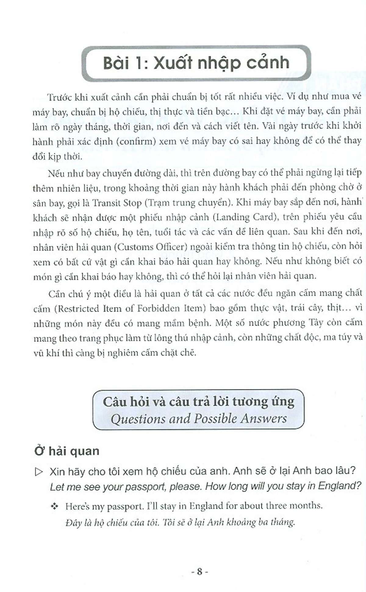 Sách có bố cục chặt chẽ, các mẫu câu đàm thoại đa dạng, được chọn lọc từ các tình huống giao tiếp thực tế, và có chú giải từ vựng rõ ràng. Hy vọng bộ sách này sẽ là cẩm nang quí báu cho bạn đọc trong việc học tập và sử dụng tiếng Anh.
