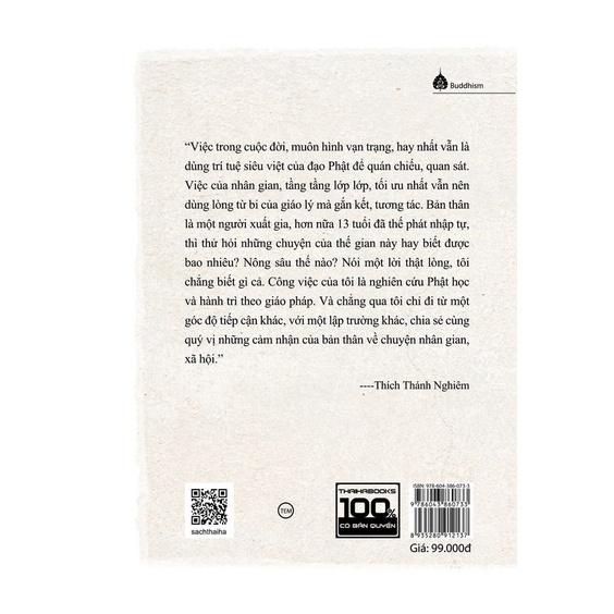 Việc trong cuộc đời, muôn hình vạn trạng, hay nhất vẫn là dùng trí tuệ siêu việt của đạo Phật để quán chiếu, quan sát. Việc của nhân gian, tầng tầng lớp lớp, tối ưu nhất vẫn nên dùng lòng từ bi của giáo lý mà gắn kết, tương tác. Bản thân là một người xuất gia, hơn nữa 13 tuổi đã thế phát nhập tự, thì thử hỏi những chuyện của thế gian này hay biết được bao nhiêu? Nông sâu thế nào? Nói một lời thật lòng, tôi chẳng biết gì cả. Công việc của tôi là nghiên cứu Phật học và hành trì theo giáo pháp. Và chẳng qua tôi chỉ đi từ một góc độ tiếp cận khác, với một lập trường khác, chia sẻ cùng quý vị những cảm nhận của bản thân về chuyện nhân gian, xã hội.