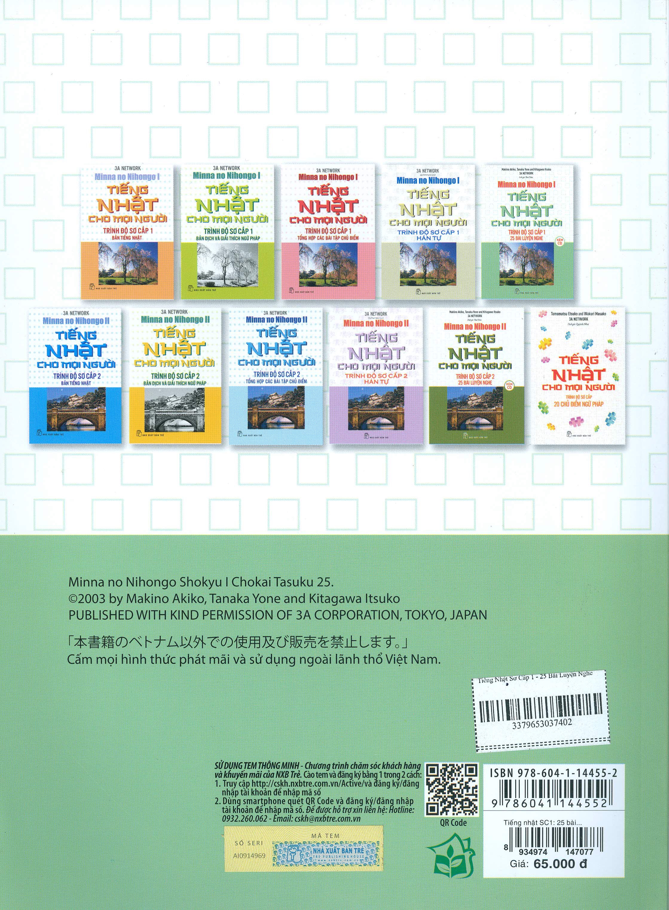 Tiếng Nhật Cho Moi Người Trình Độ Sơ Cấp 1 - 25 Bài Luyện Nghe (Kèm CD) Nhà xuất bản : NXB Trẻ. Công ty phát hành : NXB Trẻ. Tác giả : Tanaka Yone.