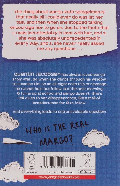 But the next day Margo doesn't come to school and a week later she is still missing. Q soon learns that there are clues in her disappearance . . . and they are for him. But as he gets deeper into the mystery - culminating in another awesome road trip across America - he becomes less sure of who and what he is looking for.