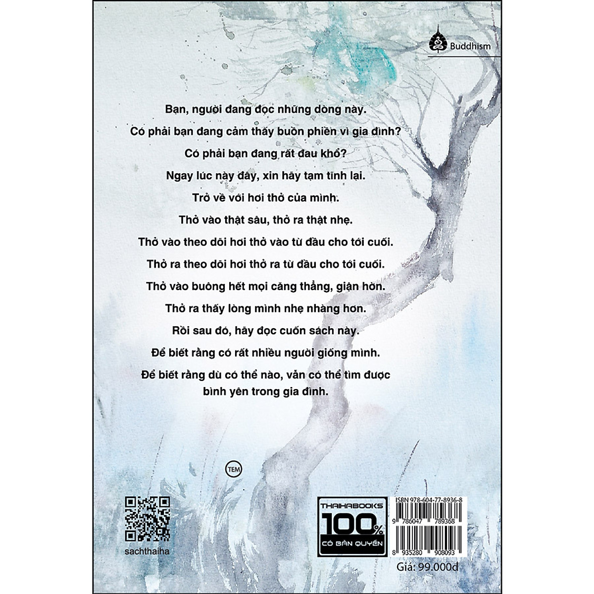 “Tìm bình yên trong gia đình” cuốn sách của Sư ông Làng Mai Thích Nhất Hạnh là tập hợp nhiều câu hỏi vấn đáp của quý Phật tử, mọi người ở khắp nơi gửi về cho Sư ông để giải đáp những vấn đề xoay quanh các mối quan hệ trong gia đình, giữa vợ với chồng, cha mẹ với con cái và cả cách vượt qua nỗi đau khi mất đi người thân…