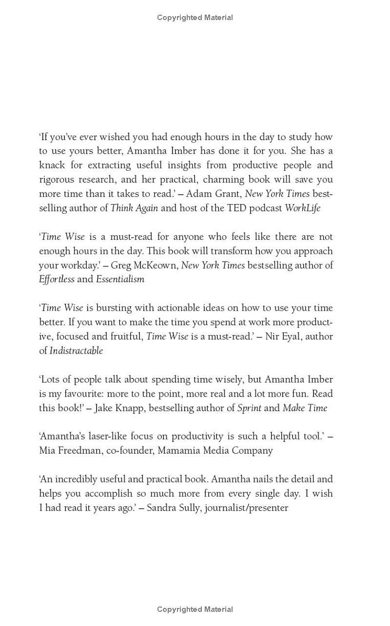 You know the basics and have heard the swallow-the-frog platitudes. Time Wise goes deeper and unveils some of the more counterintuitive but effective methods that boost your productivity. Some of the high achievers featured, along with their personal strategies, include Adam Alter setting systems instead of goals, Rita McGrath who consults her own personal board of directors, Jake Knapp who focuses on the one important thing of the day and Oliver Burkeman's approach to beating the to-do list.