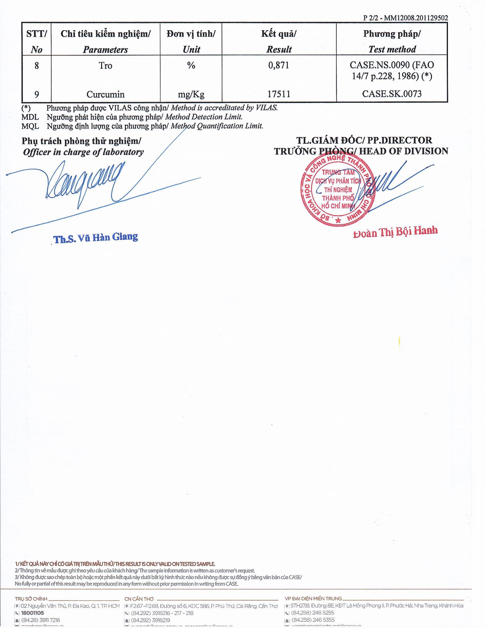 THÀNH PHẦN: nguyên chất 100% tinh bột nghệ vàng Combo sản phẩm gồm 2 lon, mỗi lon 500gr Hàm lượng curcumin từ: 88 - 758mg/kg Không chất bảo quản, không phẩm màu Đã tách dầu,