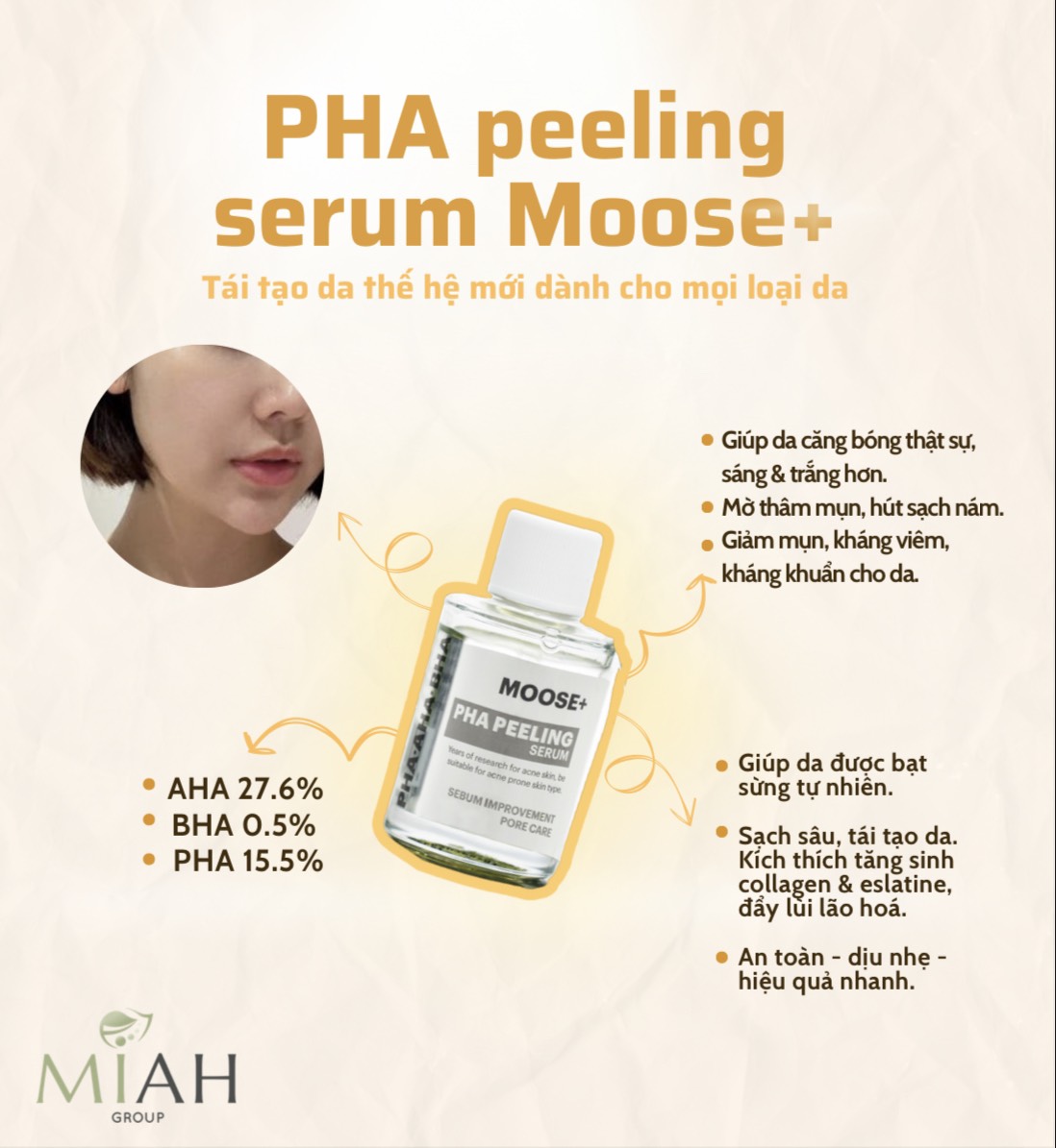 Serum/ Tinh chất Peel da PHA Moose+ 30ml Hàn Quốc tái tạo da thế hệ mới dành cho mọi loại da