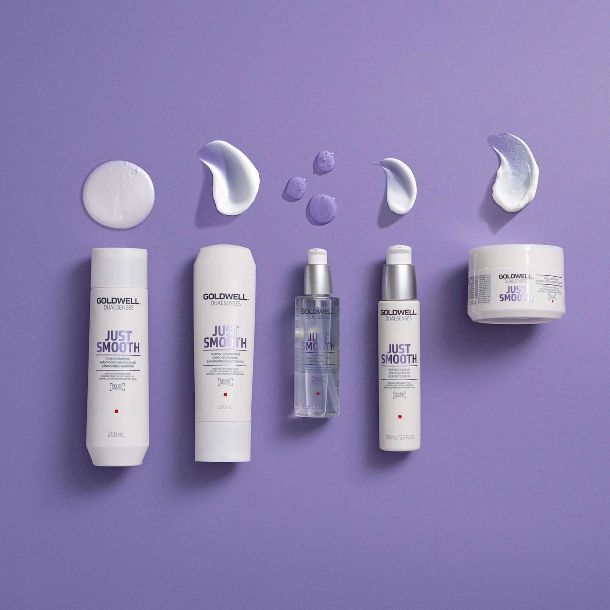 ầu Hấp 60s Dưỡng Tóc Mềm Mượt Goldwell Just Smooth Giảm Bông Xù, Xơ Rối, Kiểm Soát Tóc Tức Thì - Phù hợp với tình trạng tóc: + Tóc tơ mảnh + Bông xù, xơ,