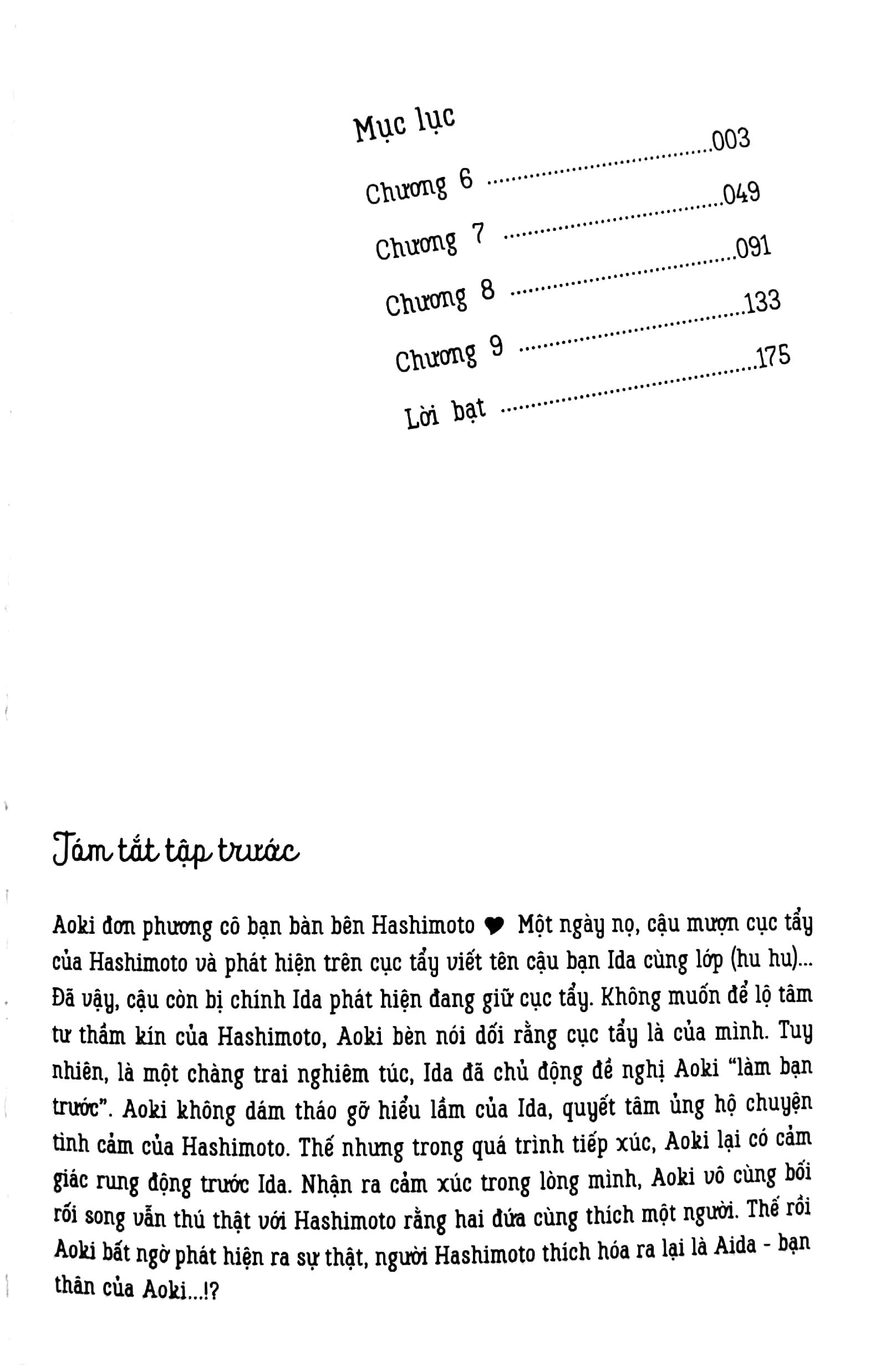 Mua tại TiktokAoki cảm nắng cậu bạn Ida mất rồi. Đã vậy cậu càng đau đầu hơn khi nghe được sự thật chấn động từ H Đúng lúc ấy, mọi người tổ chức buổi học nhóm (rất-đáng-mong-đợi) ở nhà Ida Tình cảm của Hashimoto cũng rối như tơ vò vì sự bộp chộp của cậu chàng nhí nhố A! Mời các bạn đón đọc tập 2 của bộ truyện về mối tình đầu của các cô cậu học trò có chút ngốc nghếch, song vẫn luôn nỗ lực hết mình!