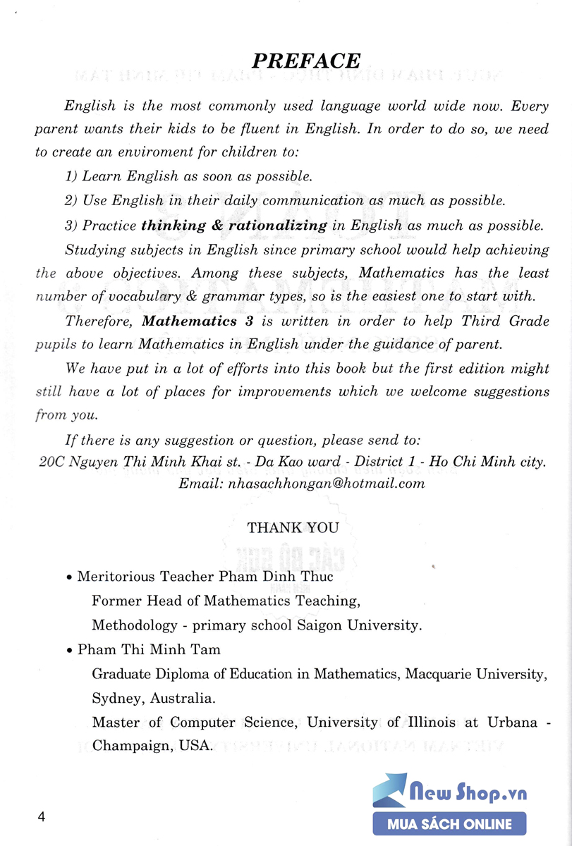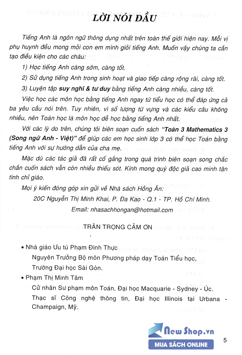 Mua tại TiktokToán 3 - Mathematics 3 (Song Ngữ Anh Việt) Tiếng Anh là ngôn ngữ thông dụng nhất trên toàn thế giới hiện nay. Mỗi vị phụ huynh đều mong mỏi con em mình giỏi tiếng Anh. Muốn vậy chúng tạo điều kiện cho các cháu: