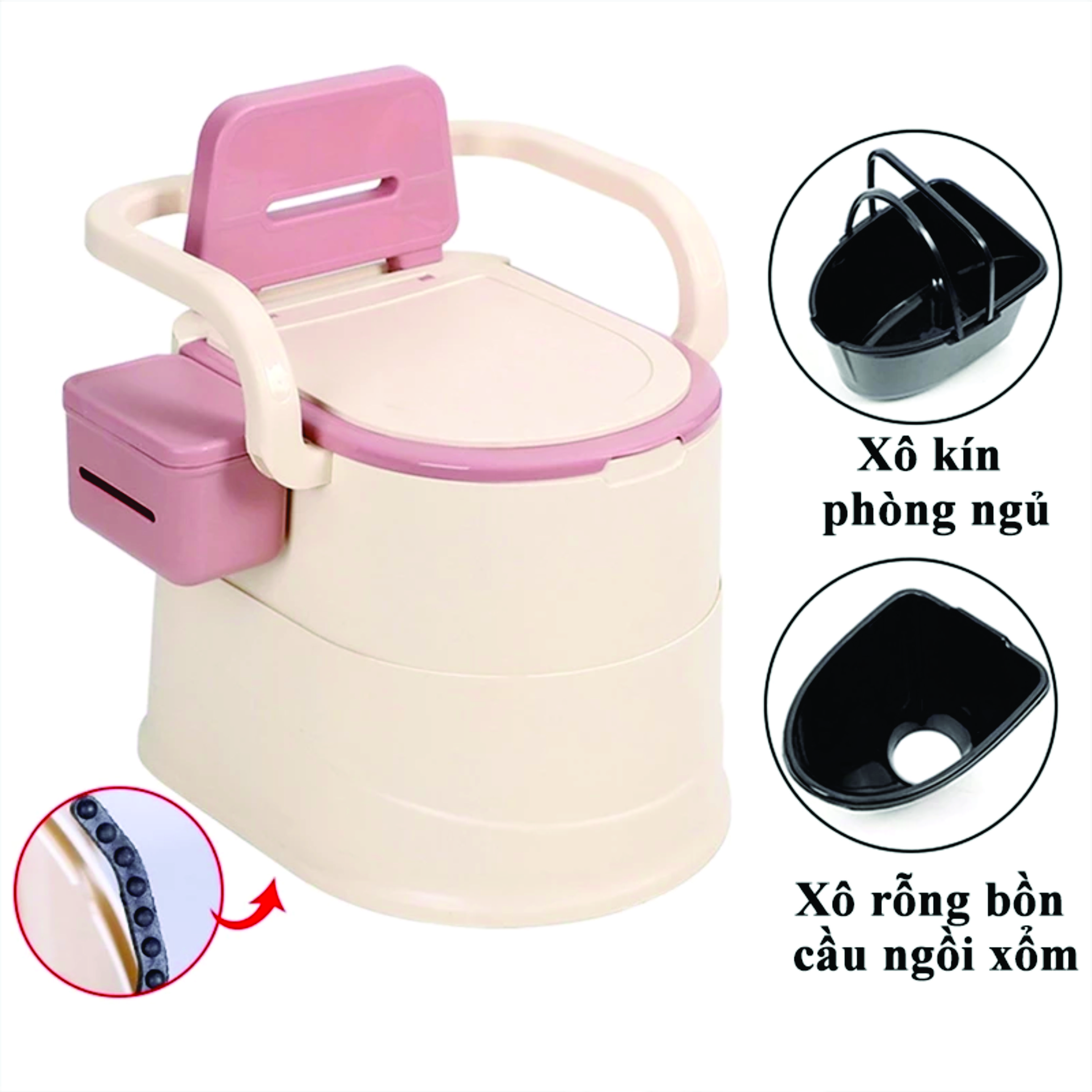 ✨Tolet, Bồn cầu di động cao cấp có tay vịn, tựa lưng đệm, có hộp giấy, siêu chịu lực dành cho trẻ em, người già, phụ nữ sanh BH 1 năm HÀNG CHÍNH HÃNG ( màu ngẫu nhiên)