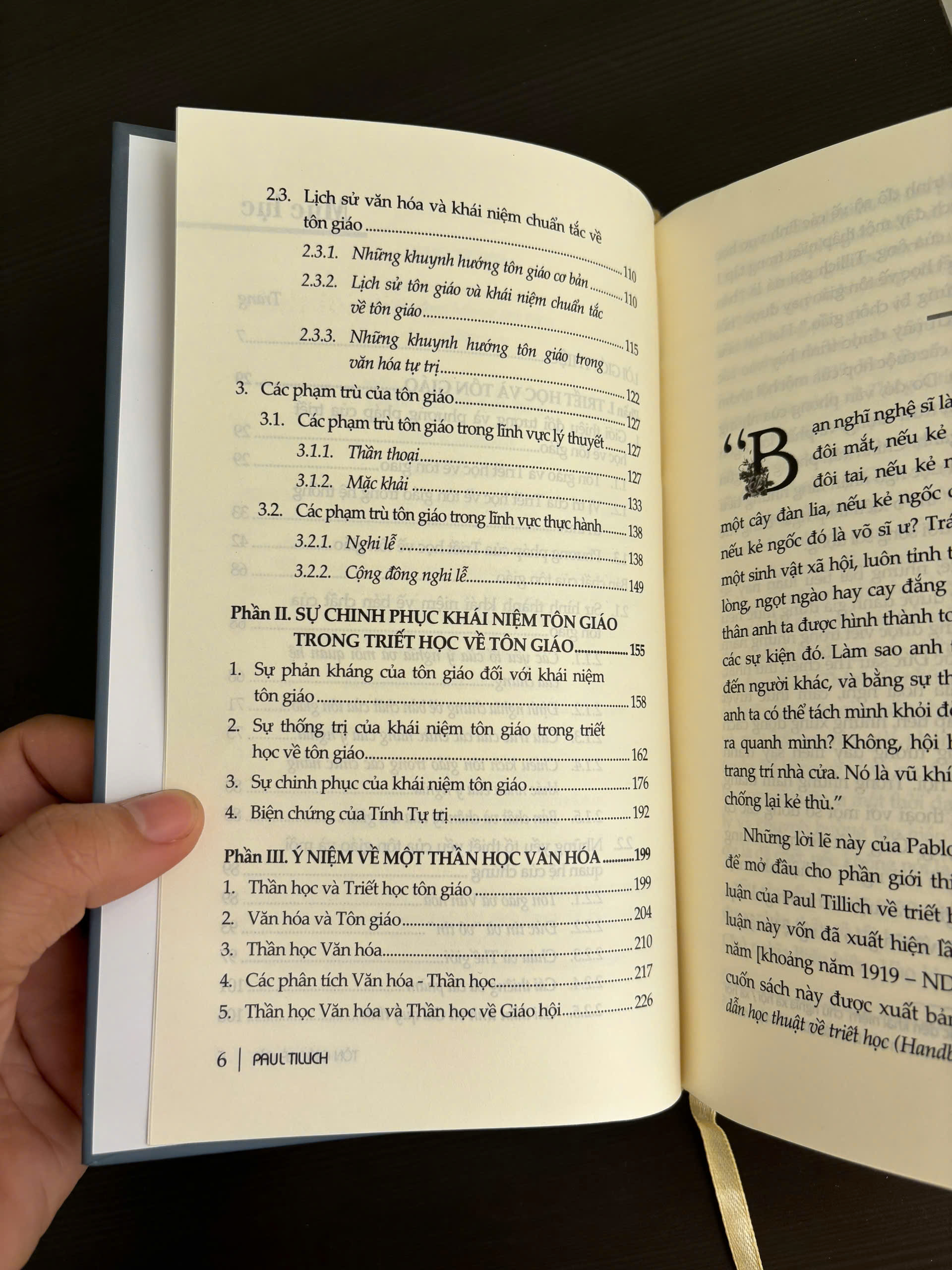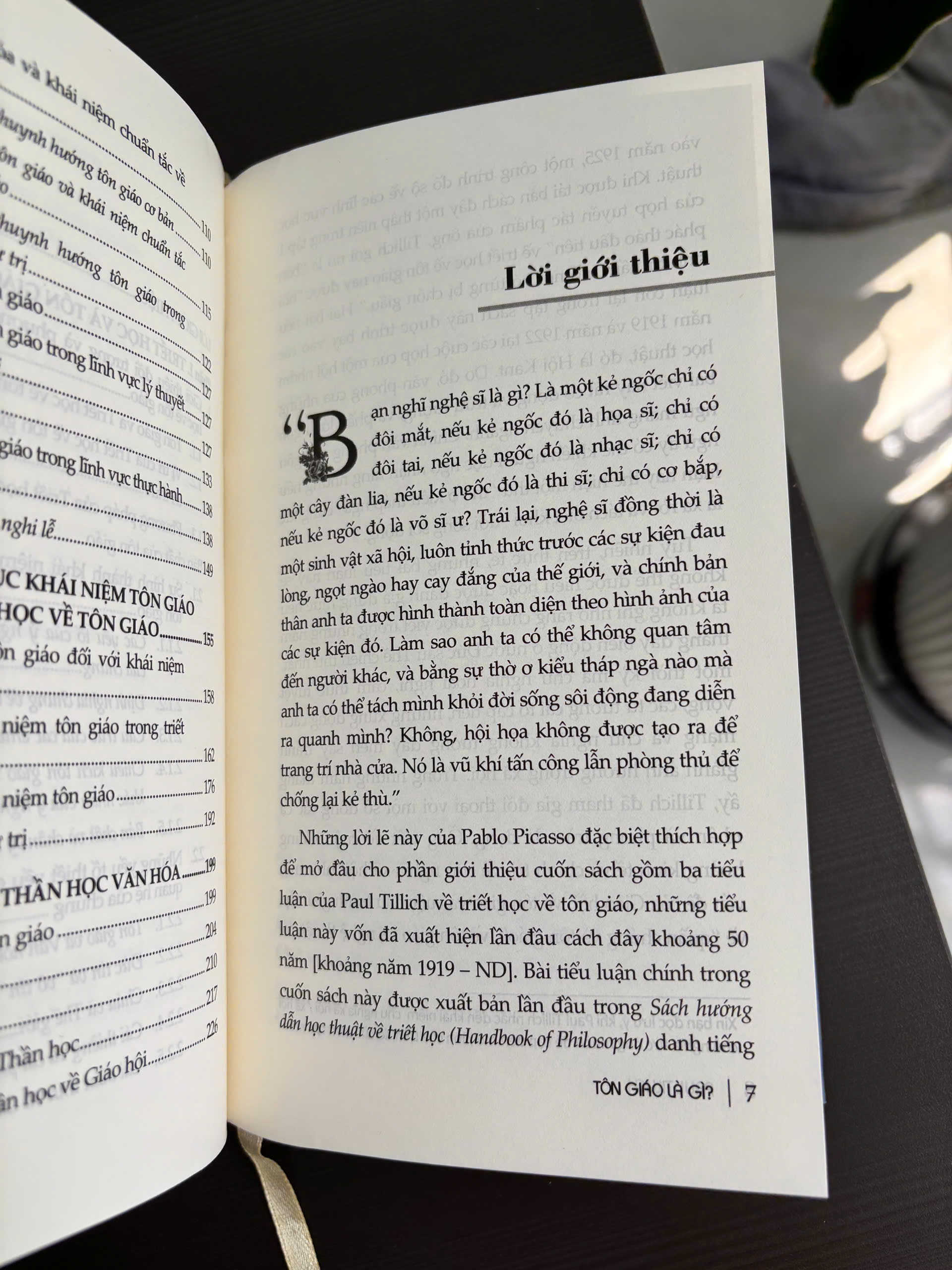 Những lời lẽ này của Pablo Picasso đặc biệt thích hợp để mở đầu cho phần giới thiệu cuốn sách gồm ba tiểu luận của Paul Tillich về triết học về tôn giáo, những tiểu luận này vốn đã xuất hiện lần đầu cách đây khoảng 50 năm [khoảng năm 1919 – ND]. Bài tiểu luận chính trong cuốn sách này được xuất bản lần đầu trong Sách hướng dẫn học thuật về triết học (Handbook of Philosophy) danh tiếng vào năm 1925, một công trình đồ sộ về các lĩnh vực học thuật. Khi được tái bản cách đây một thập niên trong tập 1 của hợp tuyển tác phẩm của ông, Tillich gọi nó là “bản phác thảo đầu tiên” về triết học về tôn giáo nay được “hồi sinh từ nấm mồ nơi nó từng bị chôn giấu.” Hai bài tiểu luận còn lại trong tập sách này được trình bày vào các năm 1919 và năm 1922 tại các cuộc họp của một hội nhóm học thuật, đó là Hội Kant. Do đó, văn phong của những bài viết này rất cô đọng và trừu tượng, và phần lớn ngôn ngữ mang tính chuyên ngành. Chính văn phong và ngôn ngữ ấy có thể khiến người đọc ngộ nhận rằng những tiểu luận này thể hiện một thứ “thờ ơ kiểu tháp ngà” cũng tức là xa rời và tách biệt khỏi “đời sống sôi động.”