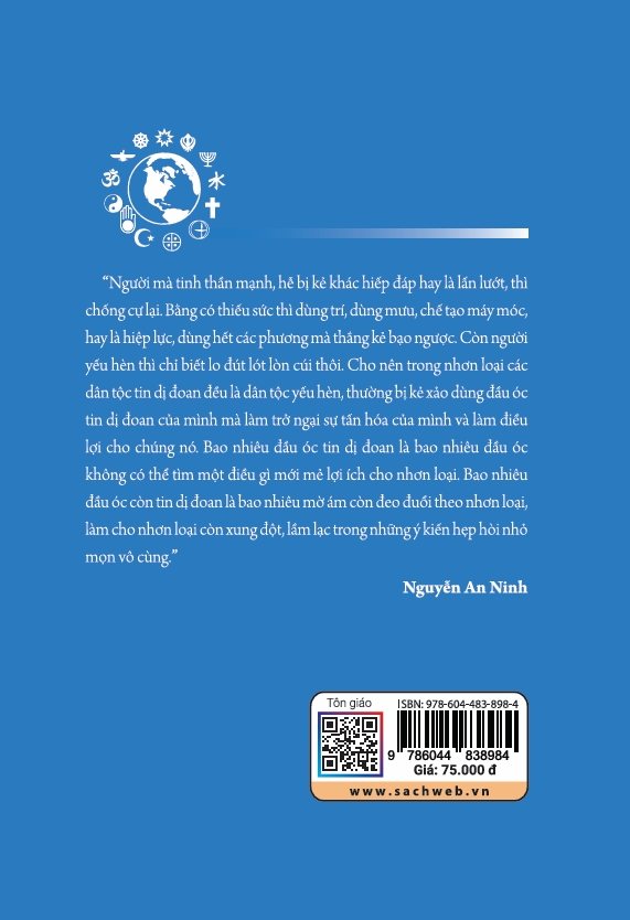 “Người mà tinh thần mạnh, hễ bị kẻ khác hiếp đáp hay là lấn lướt, thì chống cự lại. Bằng có thiếu sức thì dùng trí, dùng mưu, chế tạo máy móc, hay là hiệp lực, dùng hết các phương mà thắng kẻ bạo ngược. Còn người yếu hèn thì chỉ biết lo đút lót lòn cúi thôi. Cho nên trong nhơn loại các dân tộc tin dị đoan đều là dân tộc yếu hèn, thường bị kẻ xảo dùng đầu óc tin dị đoan của mình mà làm trở ngại sự tấn hóa của mình và làm điều lợi cho chúng nó. Bao nhiêu đầu óc tin dị đoan là bao nhiêu đầu óc không có thể tìm một điều gì mới mẻ lợi ích cho nhơn loại. Bao nhiêu đầu óc còn tin dị đoan là bao nhiêu mờ ám còn đeo đuổi theo nhơn loại, làm cho nhơn loại còn xung đột, lầm lạc trong những ý kiến hẹp hòi nhỏ mọn vô cùng.” (Nguyễn An Ninh).