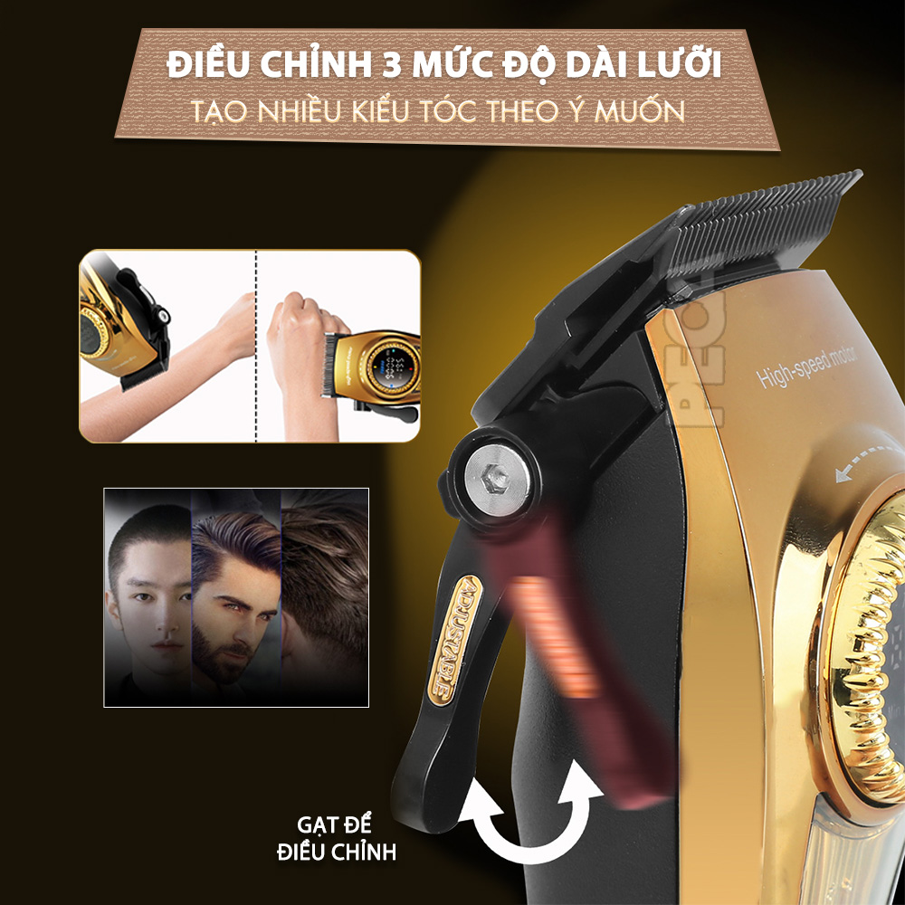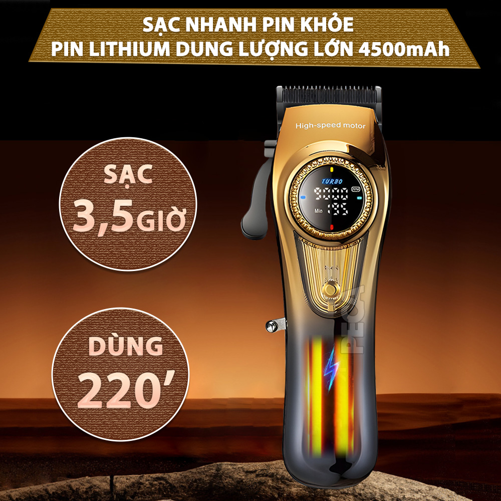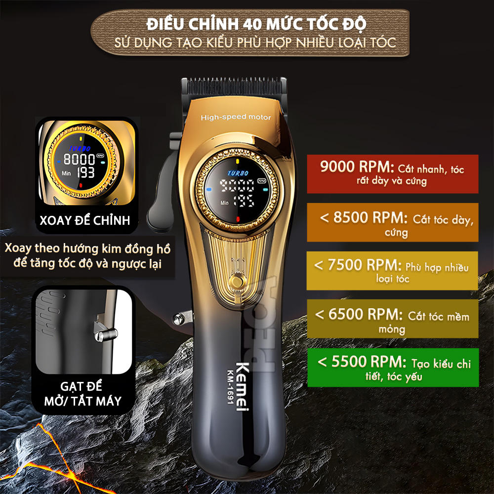 TÔNG ĐƠ CẮT TÓC CHUYÊN NGHIỆP KEMEI KM-1691 CÔNG SUẤT MẠNH 10W, MÀN HÌNH LCD HIỂN THỊ SẠC, LƯỠI CẮT MẠ CARBON DLC CAO CẤP