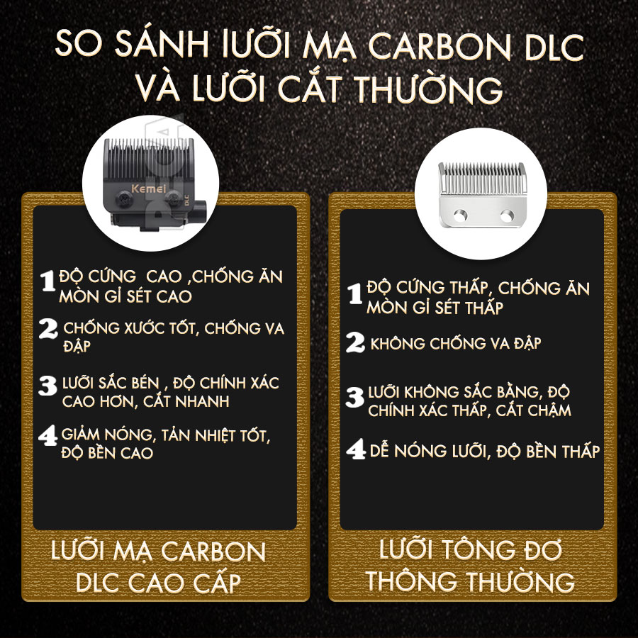 Carbon: Là lớp phủ Nanocomposite có tính chất độc đáo của kim cương giúp lưỡi sở hữu: độ cứng cao, cắt sắc bén, ít nóng...