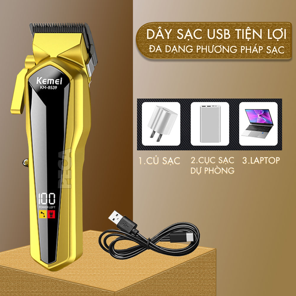 TÔNG ĐƠ CẮT TÓC CHUYÊN NGHIỆP KEMEI KM-8539 CÔNG SUẤT MẠNH 5W, MÀN HÌNH LCD HIỂN THỊ, LƯỠI CẮT MẠ CARBON DLC CAO CẤP