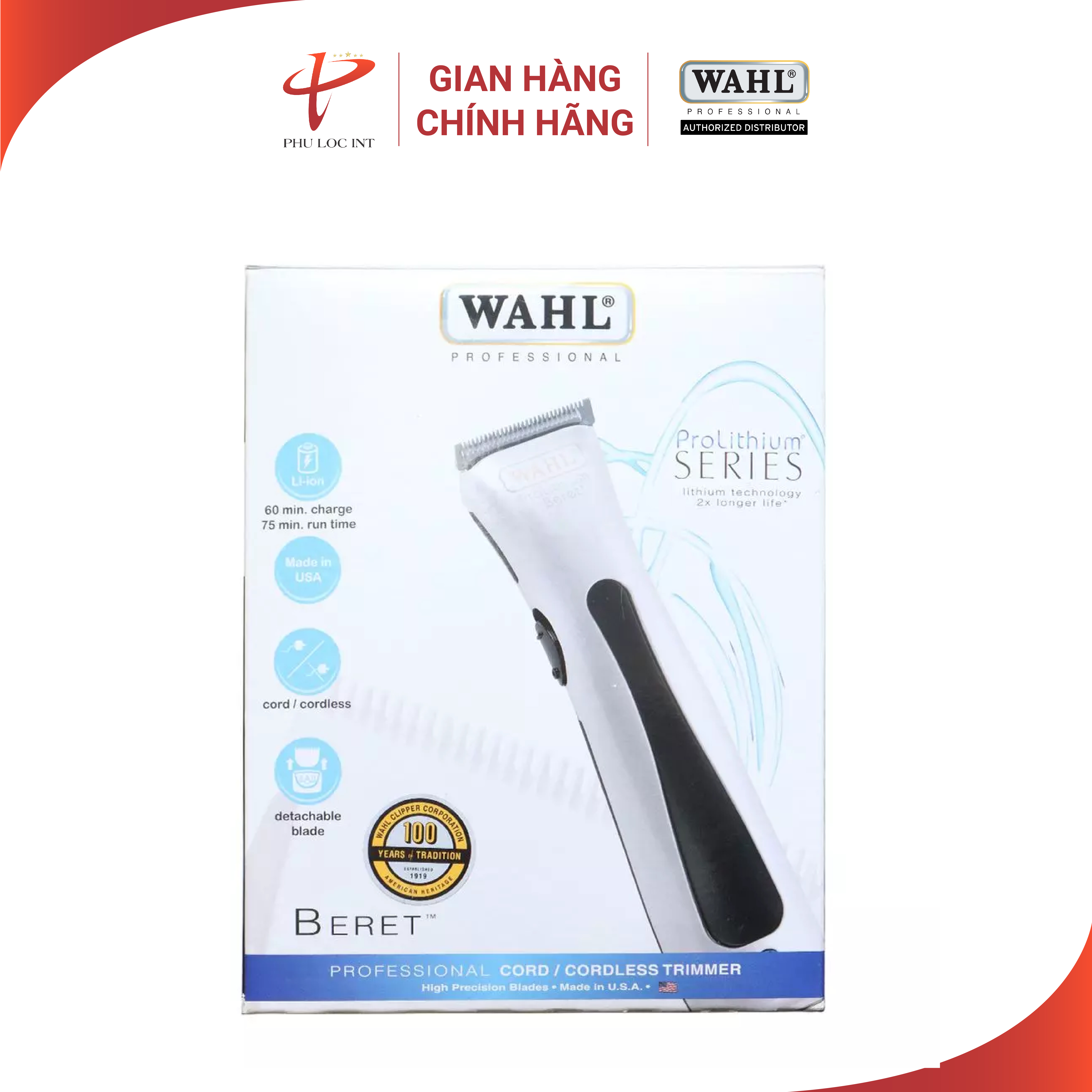 - Tông Đơ Wahl Beret sử dụng công nghệ pin mới nhất lithium ion một lần sạc sử dụng liên tiếp được 120 phút. Bộ chốt trên lưỡi cung cấp độ chính xác cao khi