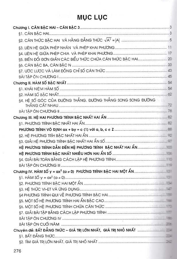 1. Nội dung sách tổng ôn toán học lớp 9 Tập 1 gồm 4 chương: - Chương 1: Căn bậc hai, căn bậc ba. - Chương 2: Hàm số bậc nhất. - Chương 3: Hệ