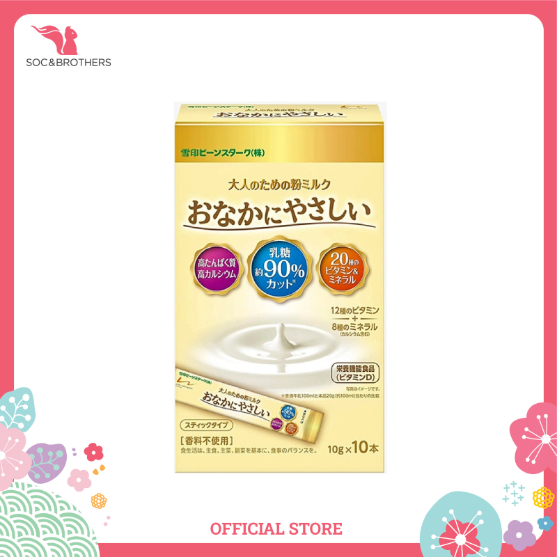 Sữa bột dinh dưỡng BeanStalk dành cho người lớn Onaka ni Yasashi là một sản phẩm sữa bột dinh dưỡng đặc biệt được tạo ra để bổ sung cho chế độ ăn hàng ngày cho người lớn, đặc biệt phù hợp cho người bị bất dung nạp Lactose (dị ứng sữa, bụng óc ách, khó tiêu sau uống sữa) và người cần hạn chế đường trong khẩu phần Thành phần: Sữa bột gầy (sản xuất tại Nhật Bản), dextrin (tinh bột đường hóa), đạm sữa, dầu thực vật (dầu hạt cọ, dầu cọ, dầu hạt cải, dầu đậu nành), đường lỏng isomaltooligosaccharide, inulin (chất xơ)/ Lecithin, Kali citrat, Mg clorua, Ca cacbonat, vitamin C, Sắt pyrophosphate, vitamin E, Kẽm gluconat, Kali cacbonat, Niacin, vitamin A, Ca pantothenate, vitamin B1, vitamin B6, vitamin B2, Axit folic, vitamin K, vitamin D, vitamin B12. Ưu điểm của sản phẩm: