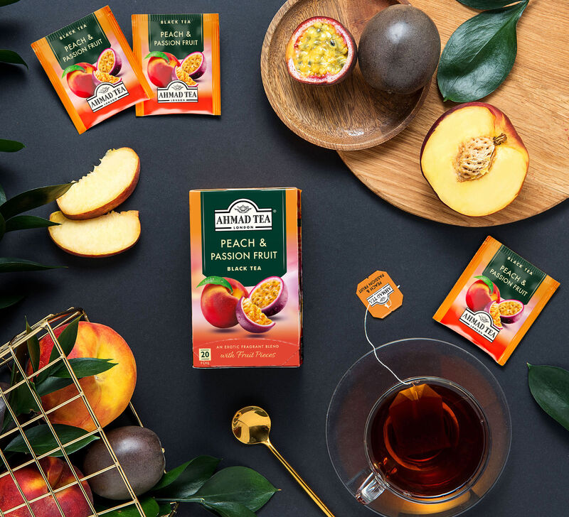 AHMAD TEA Peach & Passion Fruit Iced Tea.