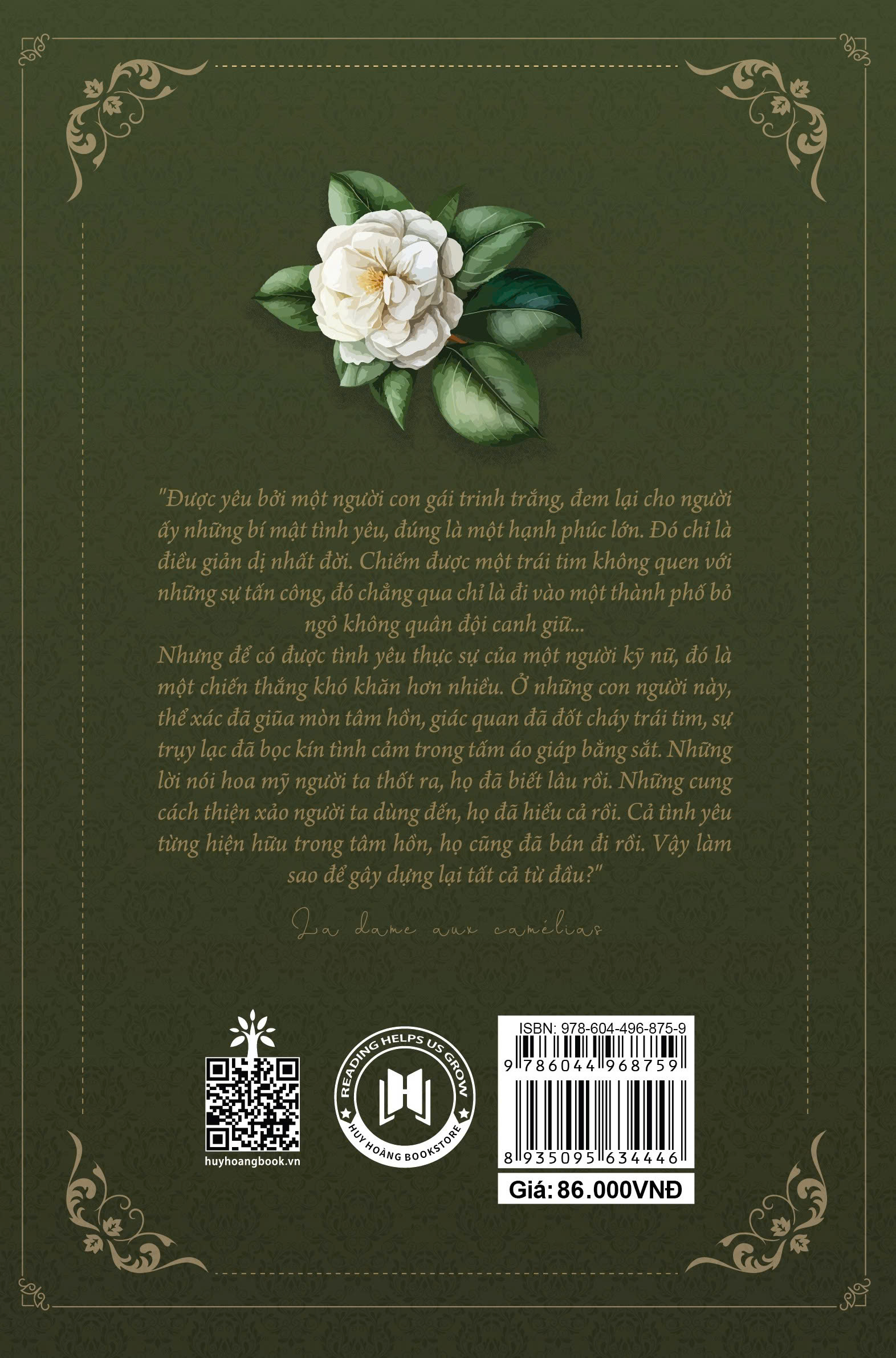 Truyện được kể qua lời của hai nhân vật nam là Armand và người kể chuyện đã tham dự buổi đấu giá tài sản tại chính căn nhà xa hoa sau khi Marguerite qua đời. Một số học giả cho rằng căn bệnh của Marguerite và nguyên nhân cái chết được công bố của người tình của tác giả, Marie Duplessis do "bệnh lao" chính là uyển ngữ của thế kỷ 19 cho căn bệnh giang mai .