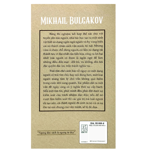 Ông hi vọng cải biến sinh vật đó thành người có trí tuệ. Nhưng vừa có được chỗ đứng trong cộng đồng người, sinh vật đó đã trở thành mối nguy hiểm đe doạ ngay cả người tạo ra nó, và cái sai lầm của thí nghiệm là ở chỗ nhà bác học đã cấy não của một con người cụ thể là Clim Trugunkin – một kẻ vô sản lưu manh chuyên trộm cắp, rượu chè, dối trá. Cho nên Saricov – cái sinh vật đã tiếp thu “ý thức” của Klim – không đại diện cho loài người nói chung, mà ở hắn tập trung những gì xấu xa, thấp hèn của tầng lớp vô sản lưu manh, cái phần bản năng tối tăm trụy lạc trong cuộc sống quần chúng.