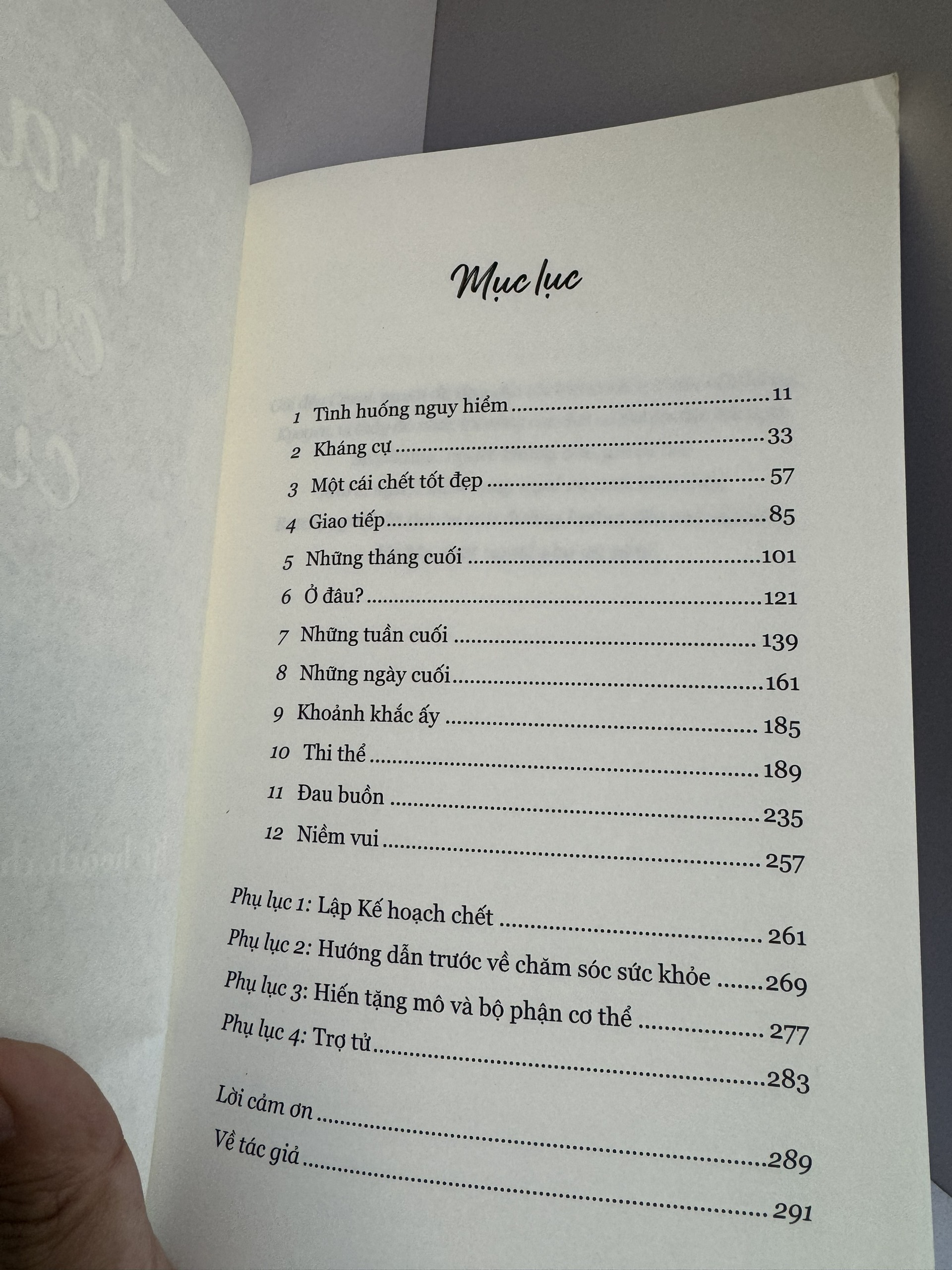 Với kinh nghiệm hơn một thập kỷ làm y tá và hoạt động trong lĩnh vực chăm sóc giảm nhẹ, tác giả từng đạt giải Pushcart Sallie Tisdale chia sẻ những suy ngẫm thẳng thắn và giàu lòng trắc ẩn về điều mà bất cứ ai cũng phải đối diện.