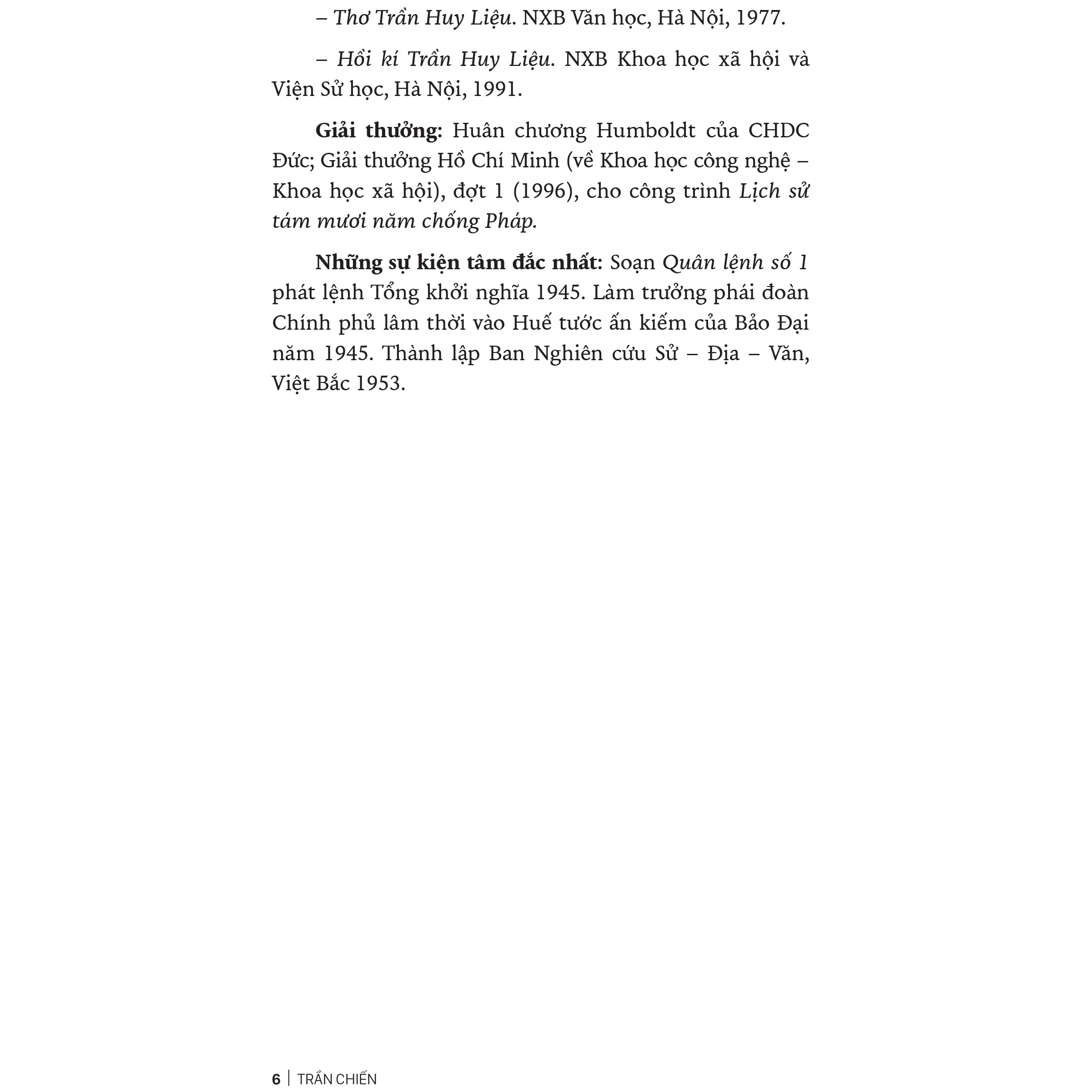 “Trần Huy Liệu là một con người “đa hệ”. Về mặt văn hoá, bắt đầu từ Nho giáo, ông chuyển dần sang tân học. Về “nhân thân xã hội”, trước sau ông là người dân tộc trong căn cốt, dù là trong phong trào Thanh niên, Quốc dân đảng hay là người Cộng sản. Nghề nghiệp thì chuyển từ làm báo sang nhà tuyên truyền, gần cuối đời đi viết sử, tức là chỉ có thể dính đến chữ nghĩa. Sinh năm 1901, ông thường nói (nửa) đùa mình là con người của thế kỉ XX. Dầu sao, đời ông gắn với những trào lưu chính yếu nhất của nước Việt trong 100 năm đó: Nho tàn, Tây học, chủ nghĩa Tam dân, hệ tư tưởng Cộng sản… Đây là những điều tôi muốn phản ánh trong sách này.”