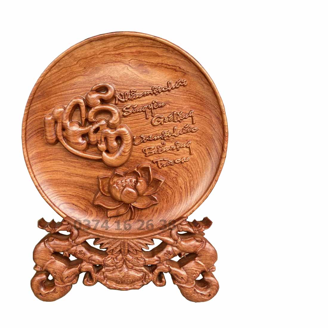 TRANH ĐĨA GỖ HƯƠNG ĐỂ BÀN. CHẤT LIỆU GỖ HƯƠNG LIỀN KHỐI LỤC LẠC, ĐỤC NỔI RẤT TINH XẢO - SƠN PU CAO CẤP ĐĨA ĐƯỢC THIẾT KẾ THÁO LẮP PHẦN CHÂN RẤT TIỆN LỢI