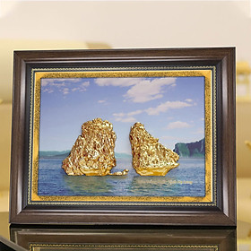 Bức Tranh Hòn Trống Mái mạ vàng còn ẩn chứa nét hiền hòa, thủy chung trong tính cách của người Việt Nam. Là sự kết hợp tài hoa khéo léo của người nghệ nhân Golden Gift Việt Nam cùng hình ảnh kỳ vĩ của hòn Trống Mái để tạo nên tuyệt tác này.