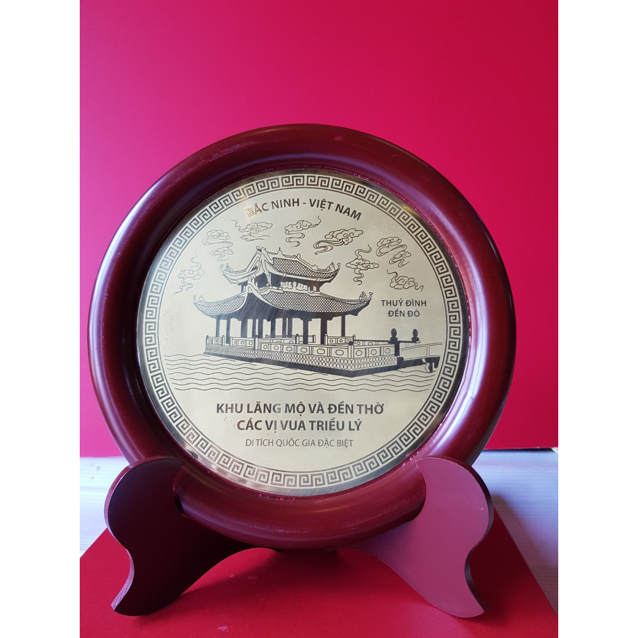 Mua tại TiktokSản phẩm tranh đĩa LĂNG MỘ CÁC VUA TRIỀU LÝ,ĐÌNH BẢNG, TX TỪ SƠN, BẮC NINH có chân để bàn phù hợp cho món quà tặng lưu niệm bền đẹp đầy ý nghĩa. Chất liệu được làm từ đồng vàng nguyên chất, chân, viền khung bằng gỗ, bao bì hộp giấy lụa mà đỏ sang trọng.