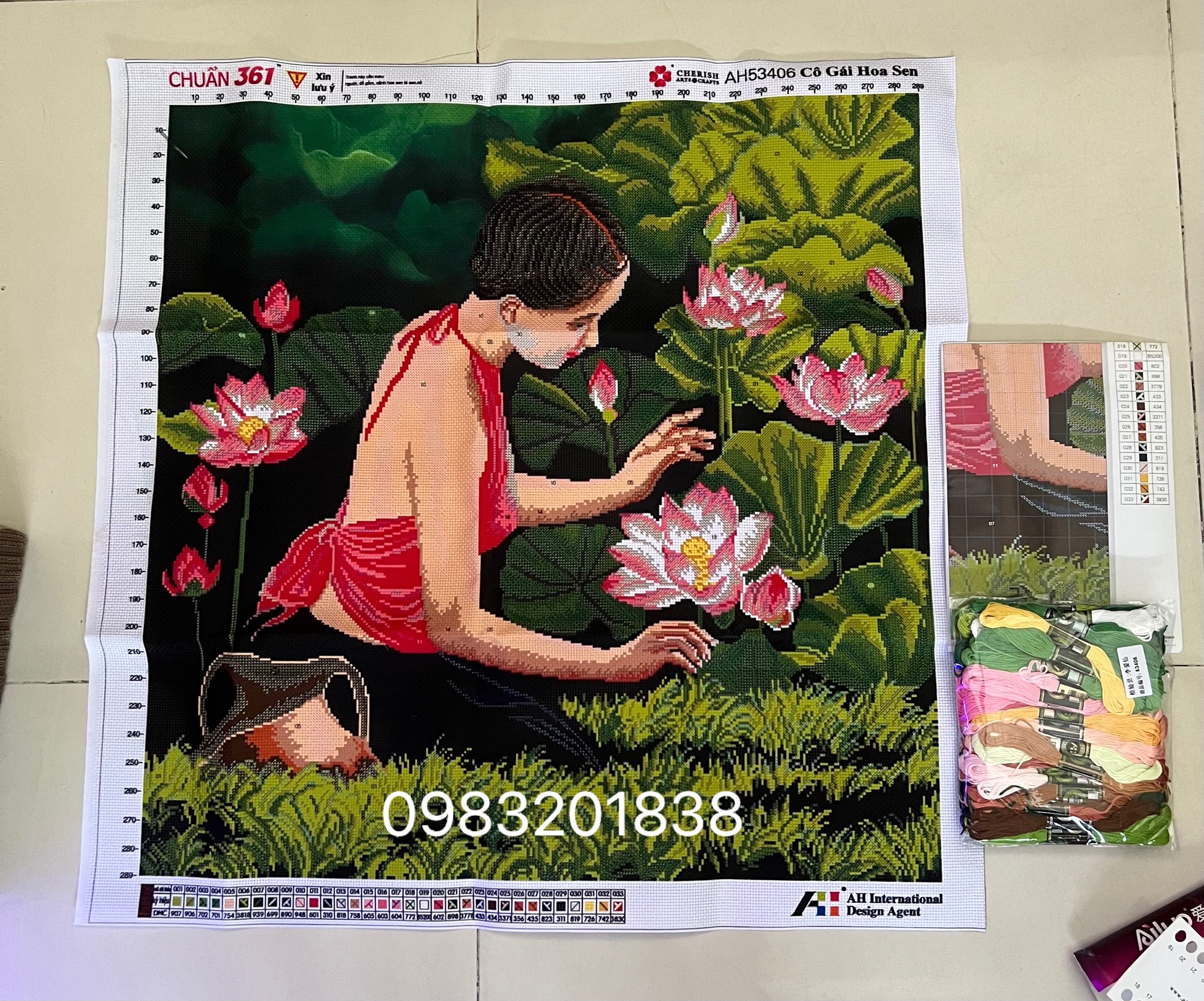 ✨Tranh thêu chữ thập Cô gái bên sen AL53406, kích thước 76 x 76 cm