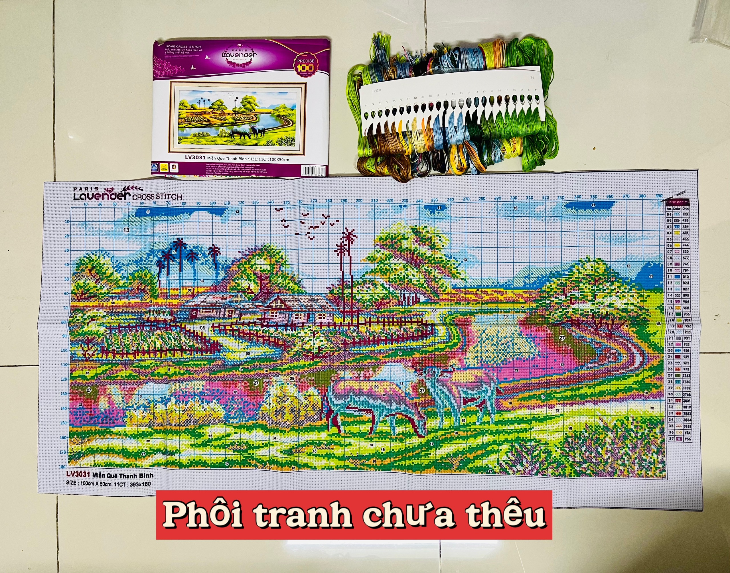 ✨Tranh thêu chữ thập Miền quê Thanh Bình LV3031, kích thước 100 x 50 cm
