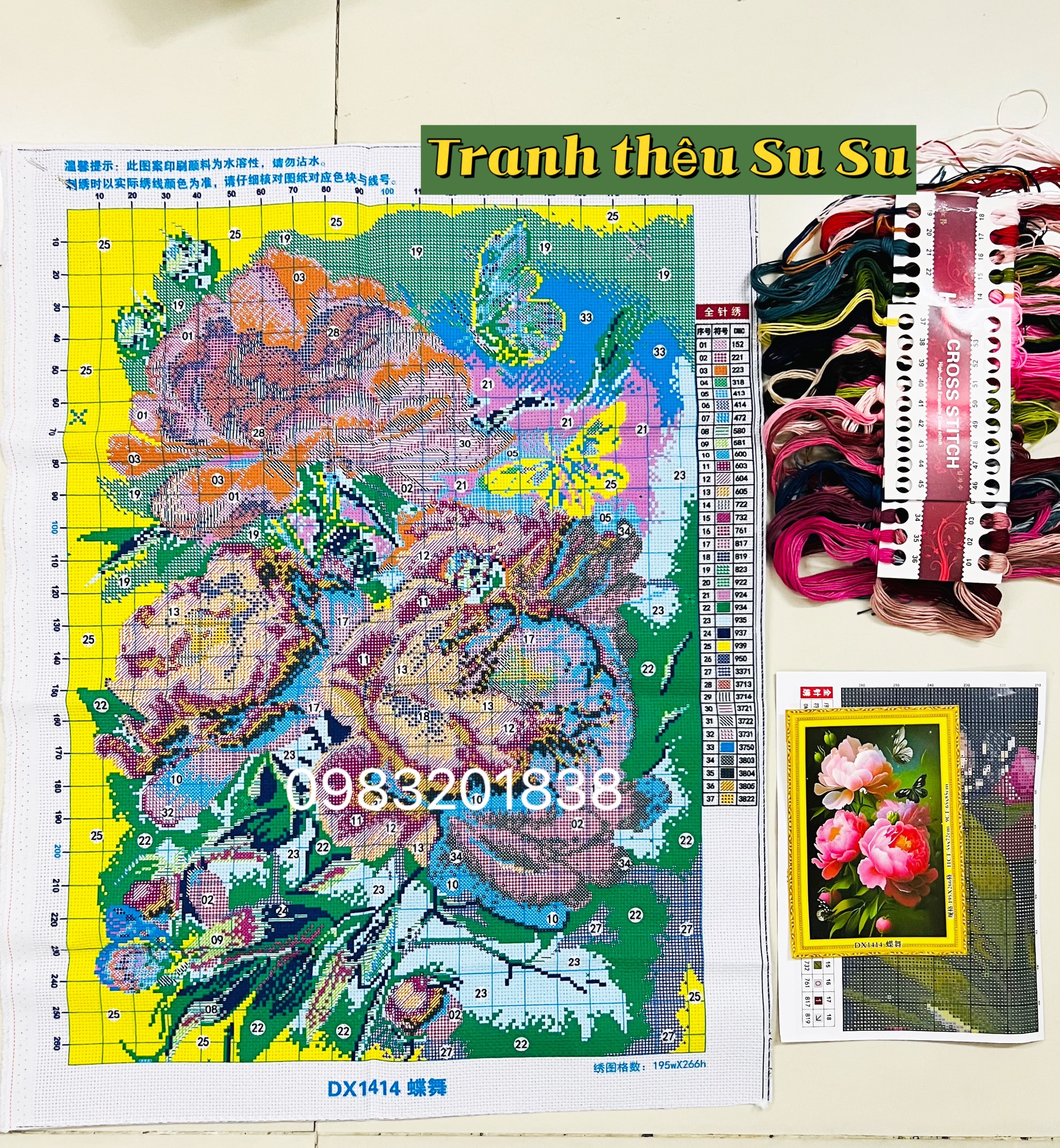 tranh thêu kín hoa mẫu đơn chưa thêu mua về tự thêu nha. lh 0965513916zalo