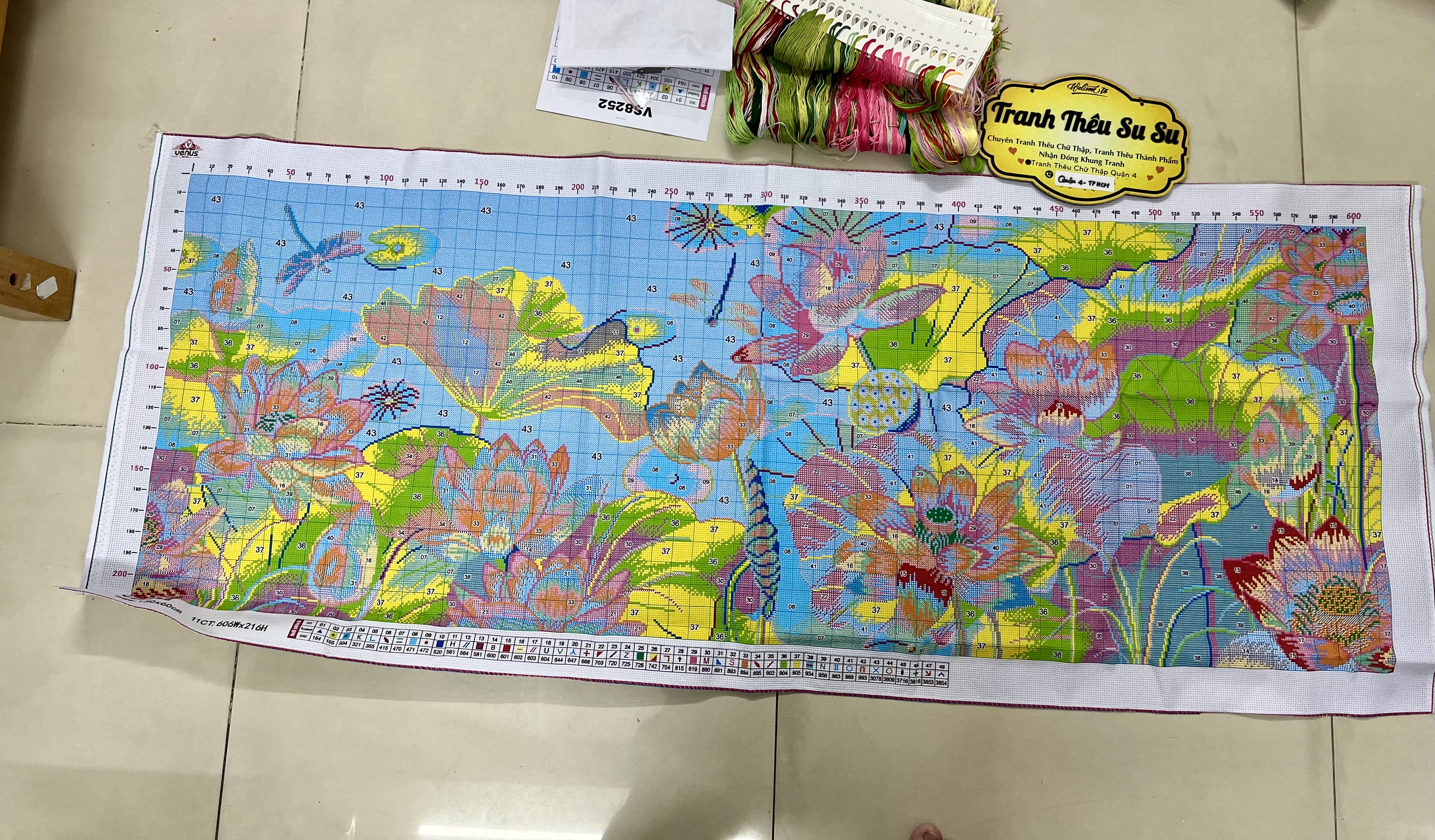 ✨Tranh thêu kín Hoa sen (đầm sen) Vs8252, kích thước 150x60 cm, 11ct thêu 3 sợi